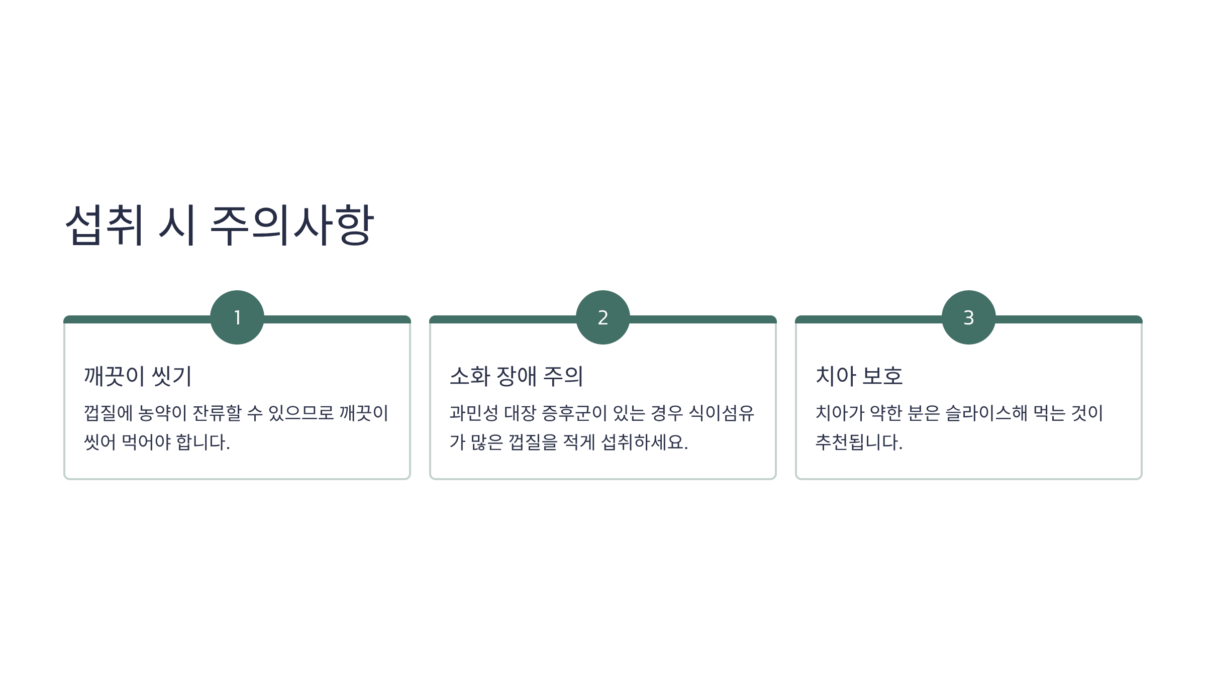 사과는 대부분 안전하지만 껍질에 농약이 잔류할 수 있으므로 깨끗이 씻어 먹어야 합니다. 소화 장애가 있거나 과민성 대장 증후군이 있는 경우 식이섬유가 많은 껍질을 적게 섭취하는 것이 좋습니다. 또한, 치아가 약한 분은 너무 단단한 사과보다는 슬라이스해 먹는 것이 추천됩니다.
