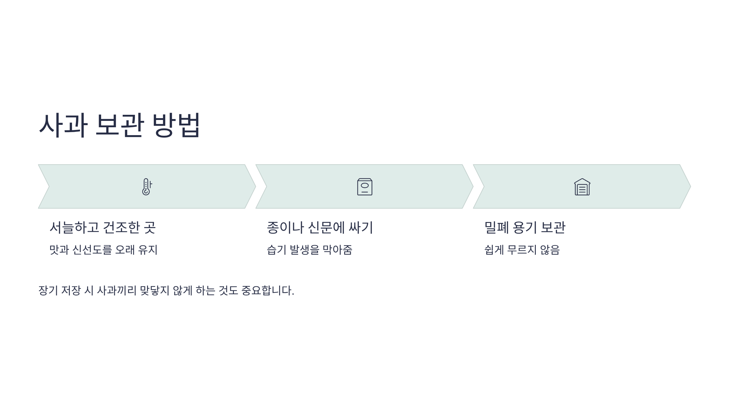가을 사과는 서늘하고 건조한 곳에 보관하면 맛과 신선도를 오래 유지할 수 있습니다. 냉장 보관 시 종이나 신문에 싸서 습기 발생을 막고, 밀폐 용기에 담아두면 쉽게 무르지 않습니다. 장기 저장하려면 사과끼리 맞닿지 않게 하는 것도 중요합니다.