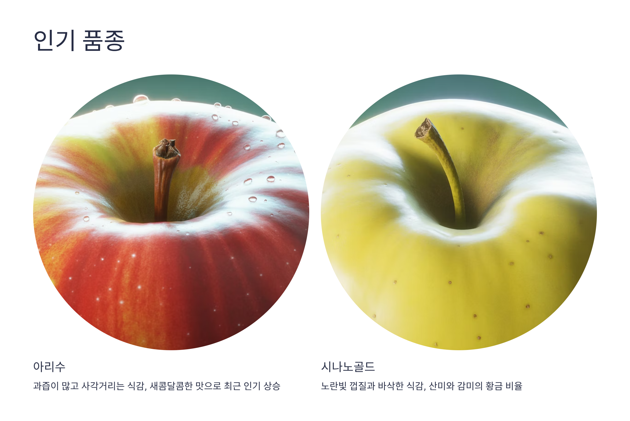 - 후지·부사: 알이 크고 단맛이 강하며 저장성이 뛰어납니다.