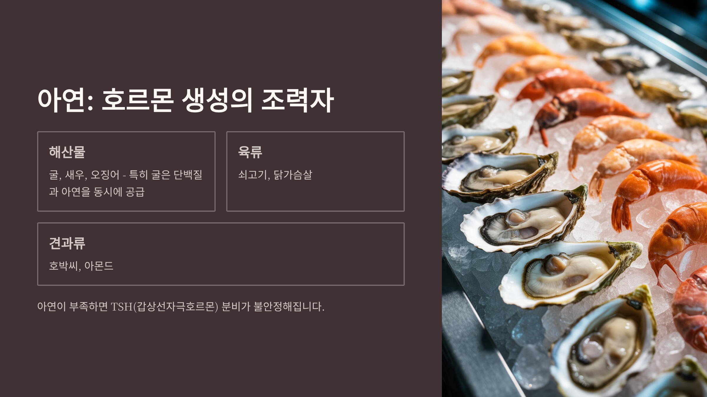 셀레늄·아연·비타민D·단백질의 균형,그리고 요오드 과잉을 피하는 절제된 식습관이 핵심입니다.
