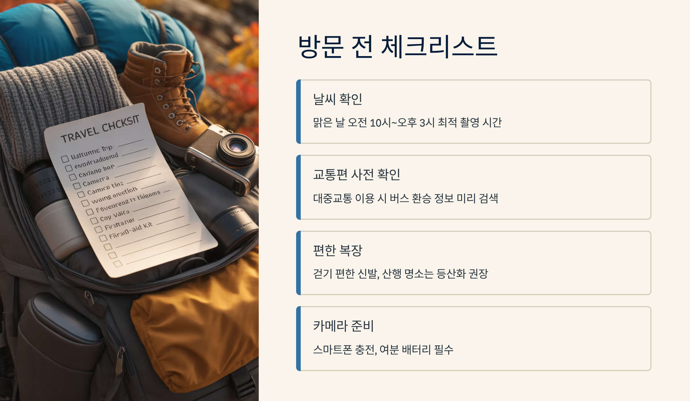 매년 가을, 수많은 사람들이 경기도 단풍구경 가볼만한 곳을 검색하지만, 늘 똑같은 명소 목록에 지치기 마련입니다. 진정한 단풍 구경은 잘 알려진 곳의 인파를 피해, 여유롭고 특별한 추억을 만들 수 있는 새로운 장소를 찾는 데 있습니다. 경기도는 넓은 면적만큼이나 아직 숨겨진 매력을 간직한 곳이 많습니다. 이 포스팅은 경기도 단풍구경 가볼만한 곳을 단순히 나열하는 대신, 각 명소의 특정 매력(인생샷, 힐링, 접근성)을 강조하여 독자들이 자신의 여행 스타일에 맞는 장소를 선택할 수 있도록 구체적이고 실용적인 가이드라인을 제공합니다. 특히 대중교통 이용객들에게 초점을 맞춘 정보가 많습니다.