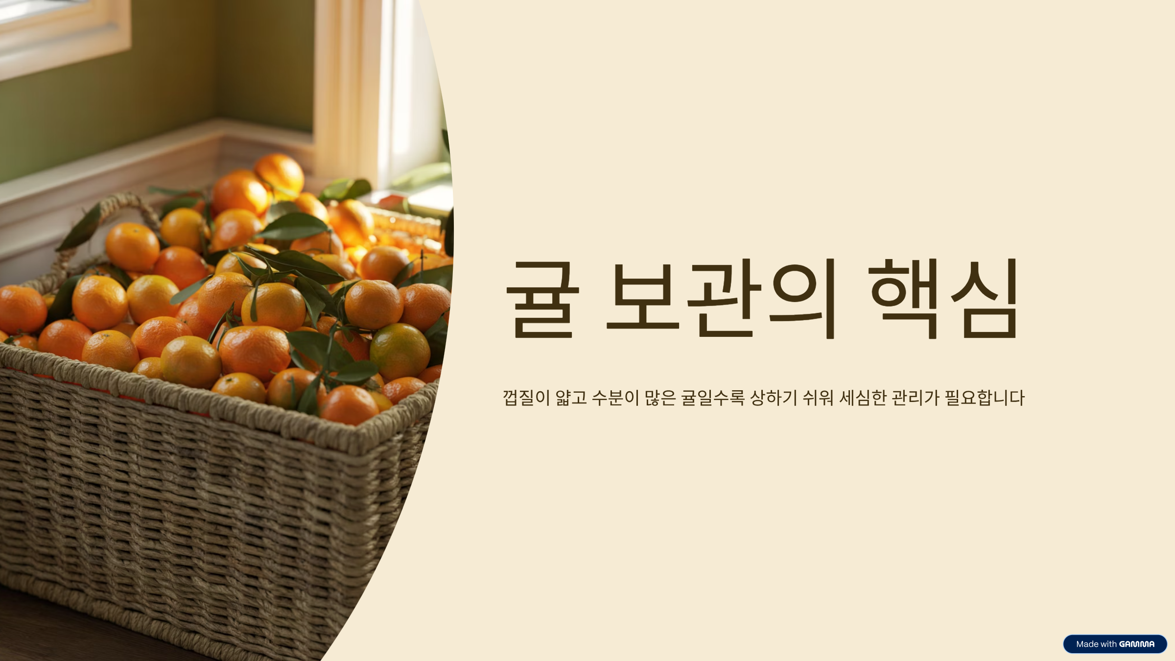 귤을 구매한 즉시 선별하고, 눌린 귤은 따로 꺼내는 작은 습관이 전체 품질을 좌우합니다.