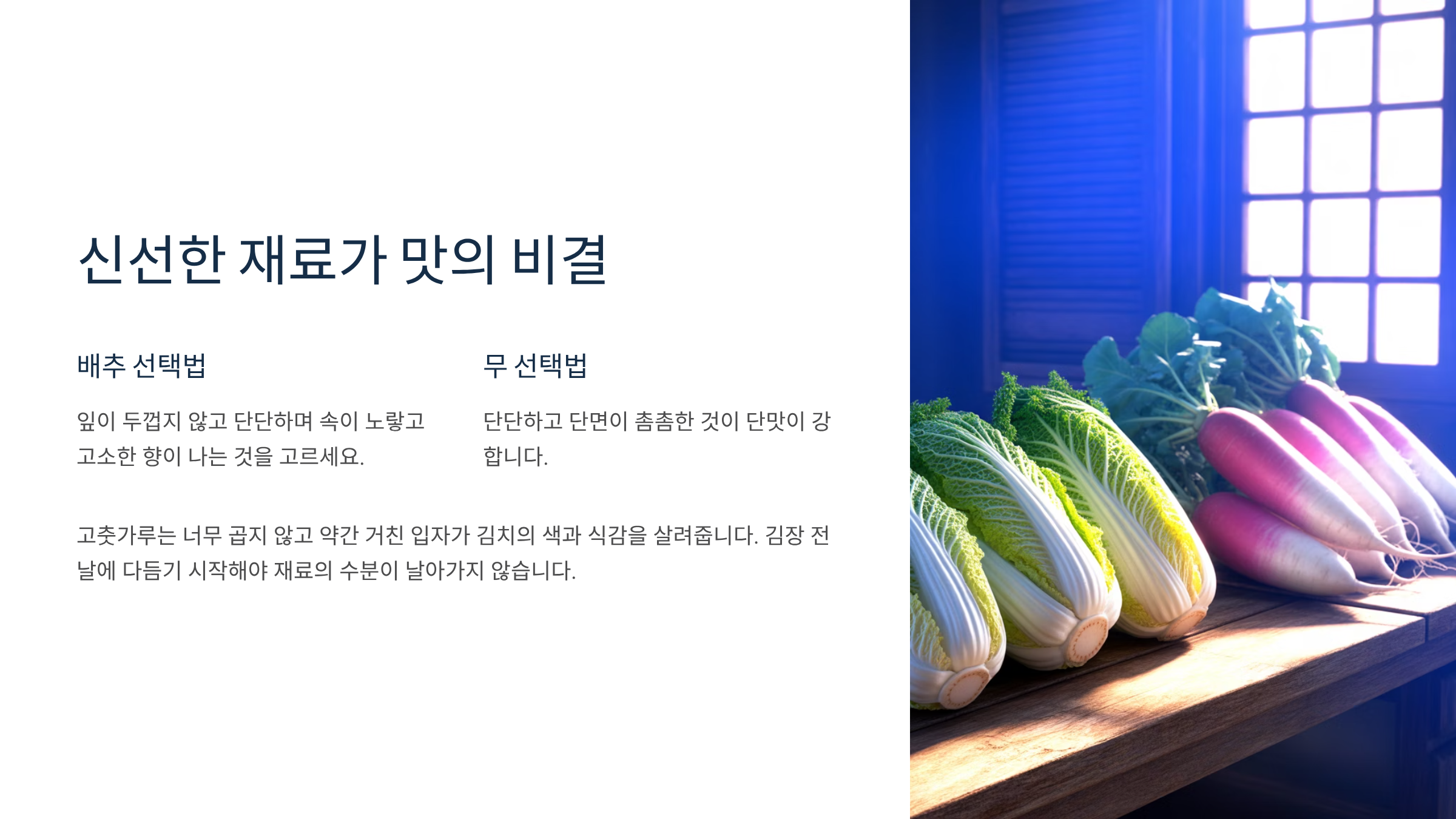 김장김치는 재료의 신선도가 곧 맛입니다.
