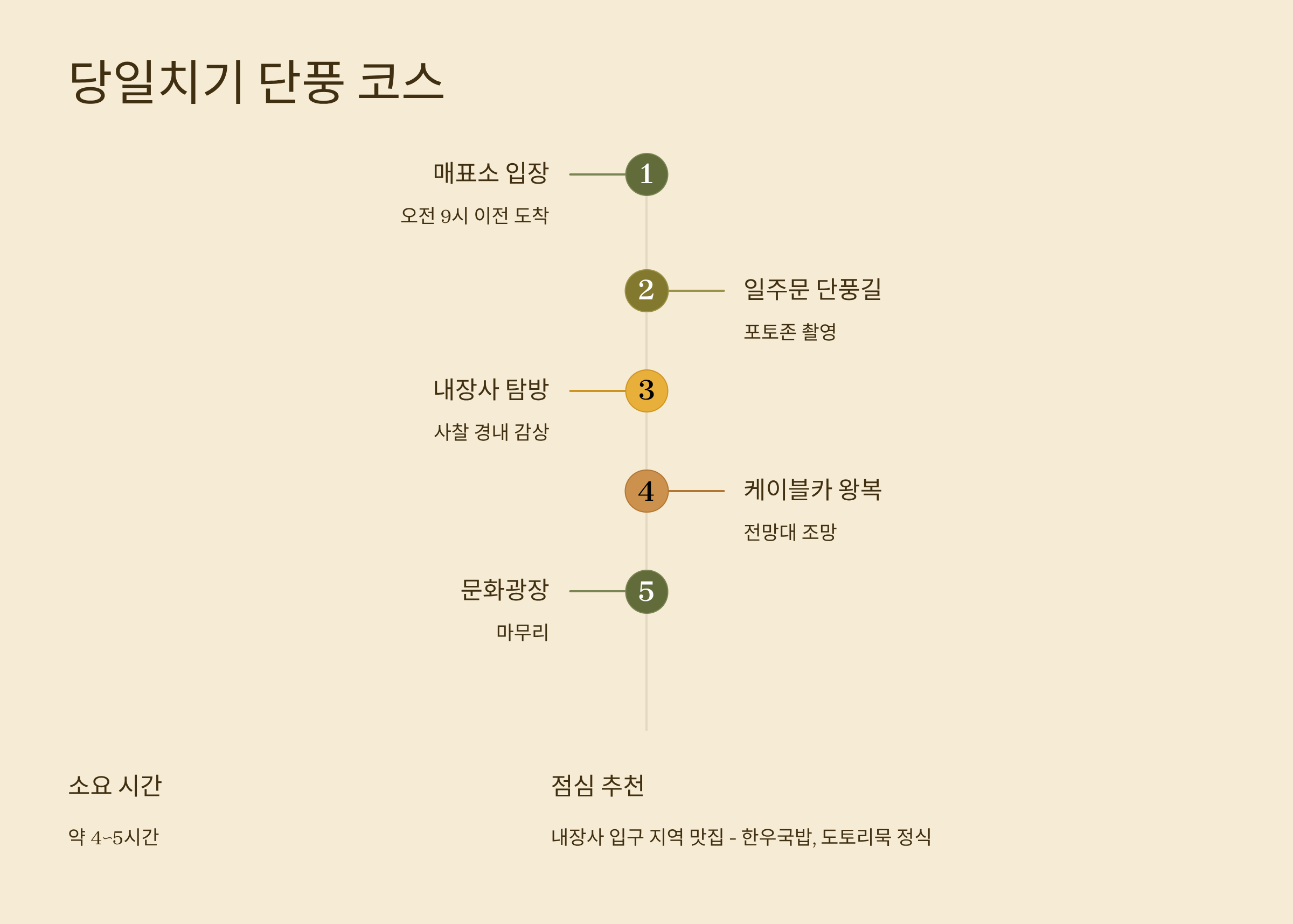 - 오전: 내장산 문화광장 → 내장사 탐방 → 케이블카 전망대