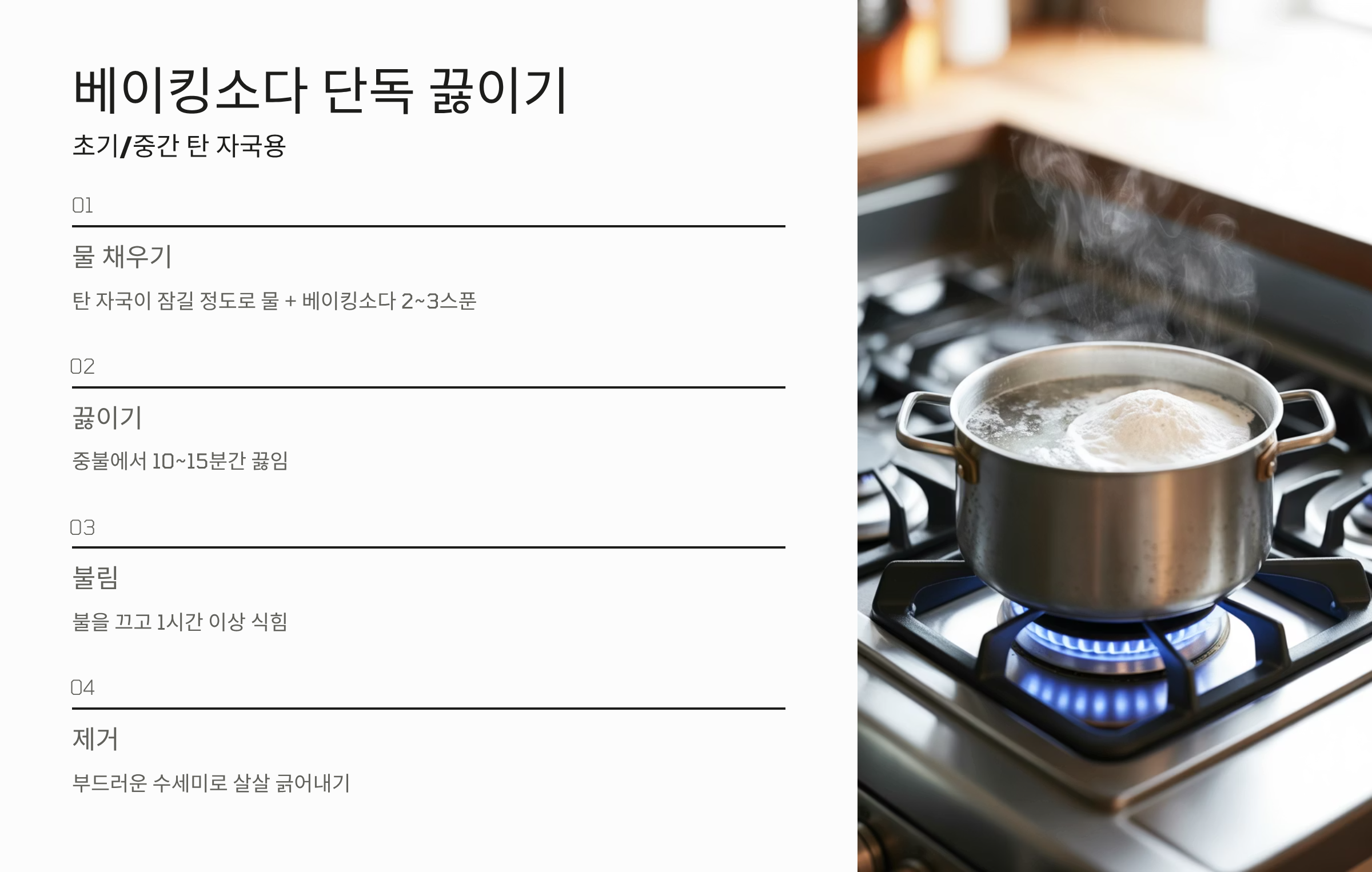 - 베이킹소다 단독 끓이기 (초기/중간 탄 자국):