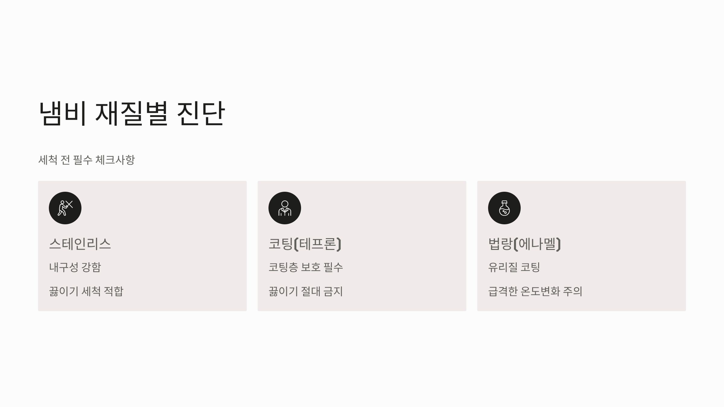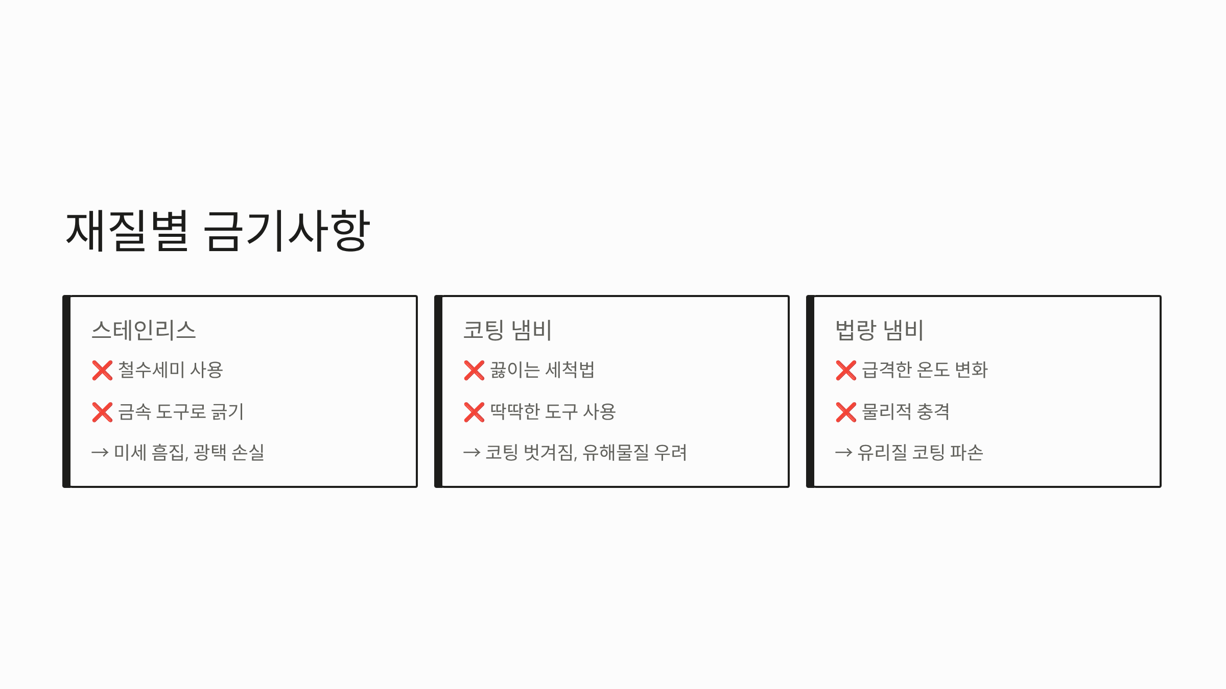 재질(스테인리스, 코팅)에 따른 세척 금기사항