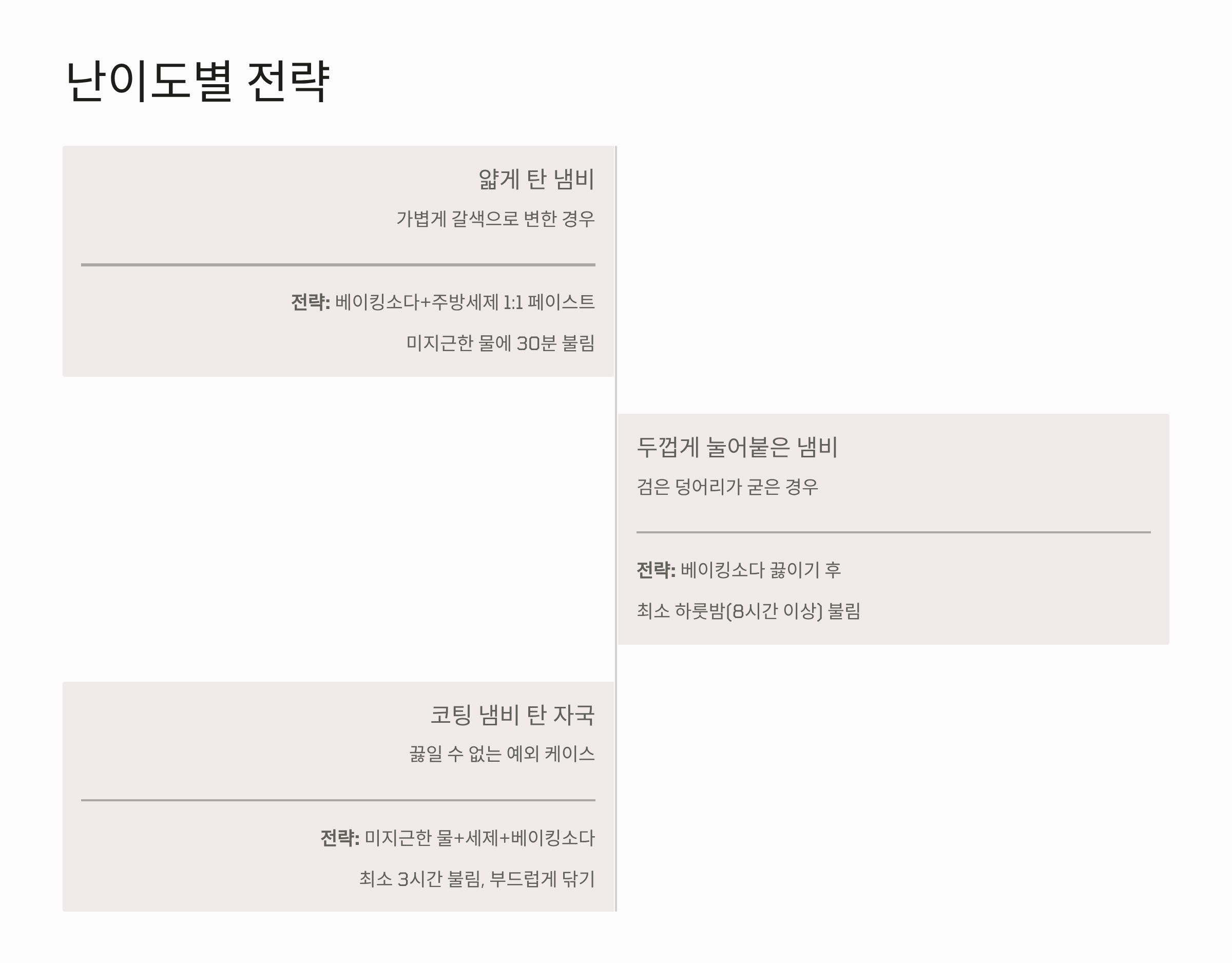 얇게 탄 냄비 vs 두껍게 눌어붙은 냄비 처리 노하우