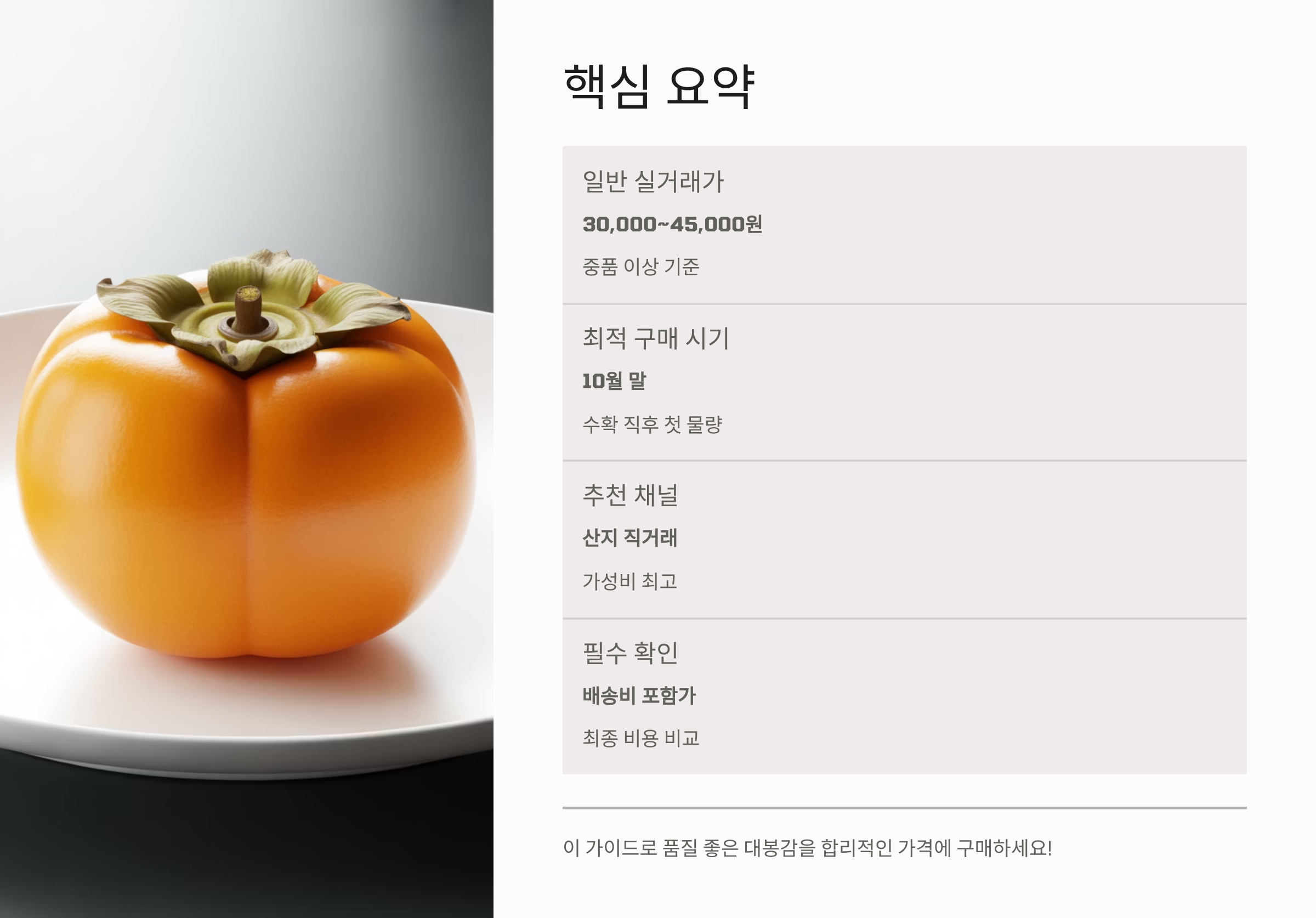 가장 저렴하게 구매하고 품질 좋은 대봉감을 고르는 노하우까지 상세히 안내하겠습니다.