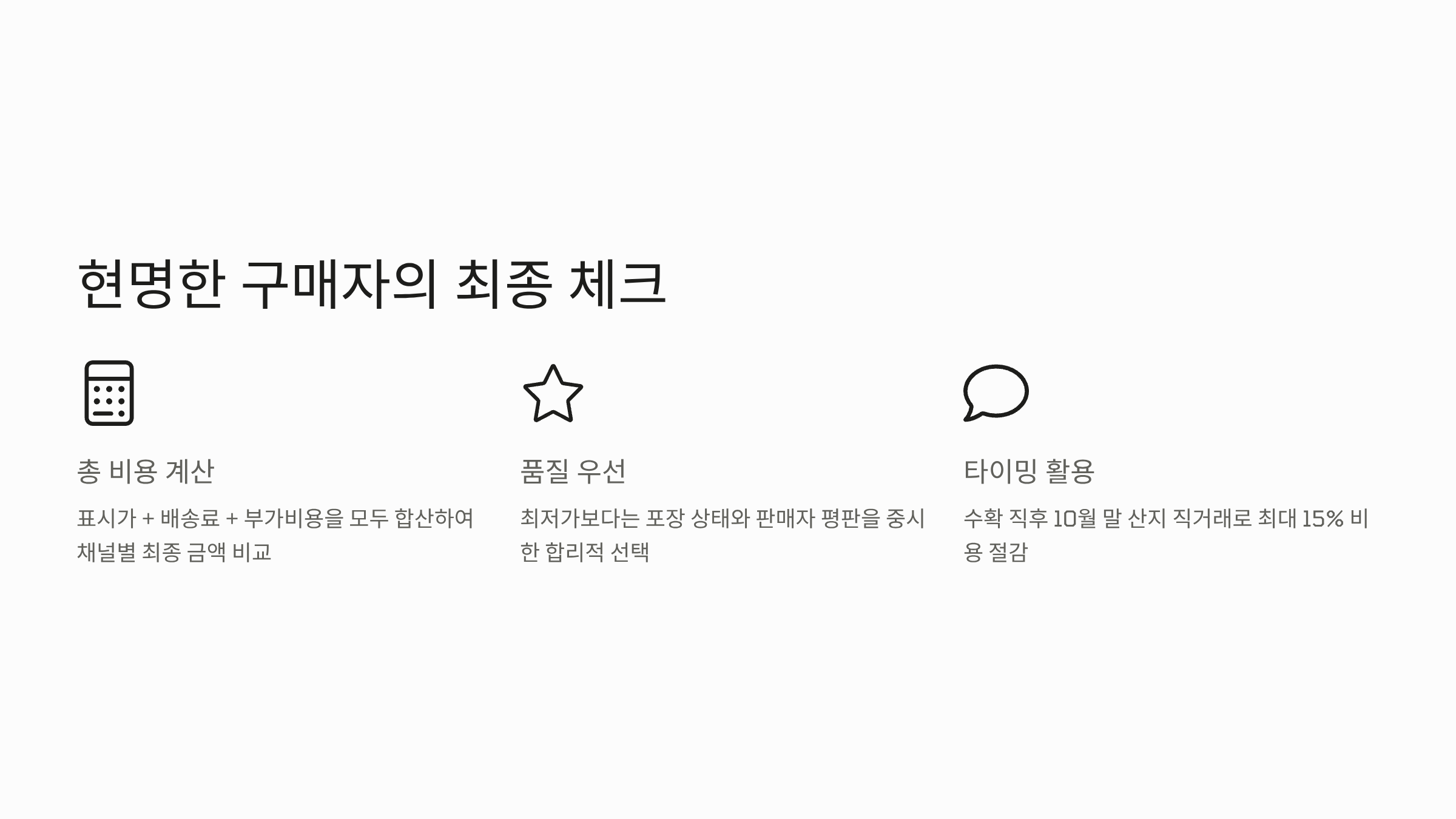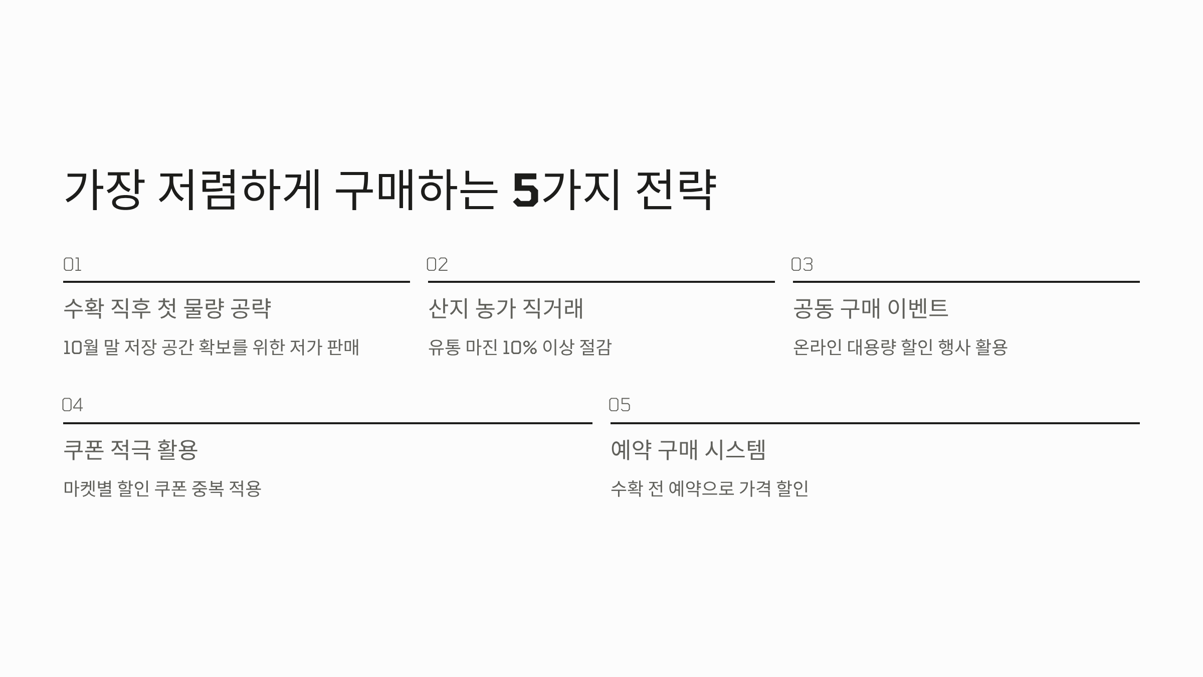 - 예약 구매 활용: 일부 농가는 수확 직전 예약 구매를 통해 수확량을 예측하여 가격을 할인해 주기도 합니다.