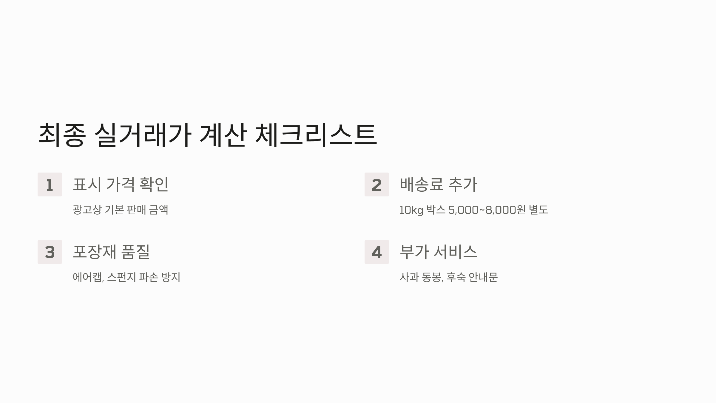 온라인에서 대봉감 10kg 가격을 확인할 때, 명시된 가격 외에 최종 실거래가를 결정하는 숨겨진 비용 요소들을 고려해야 합니다.