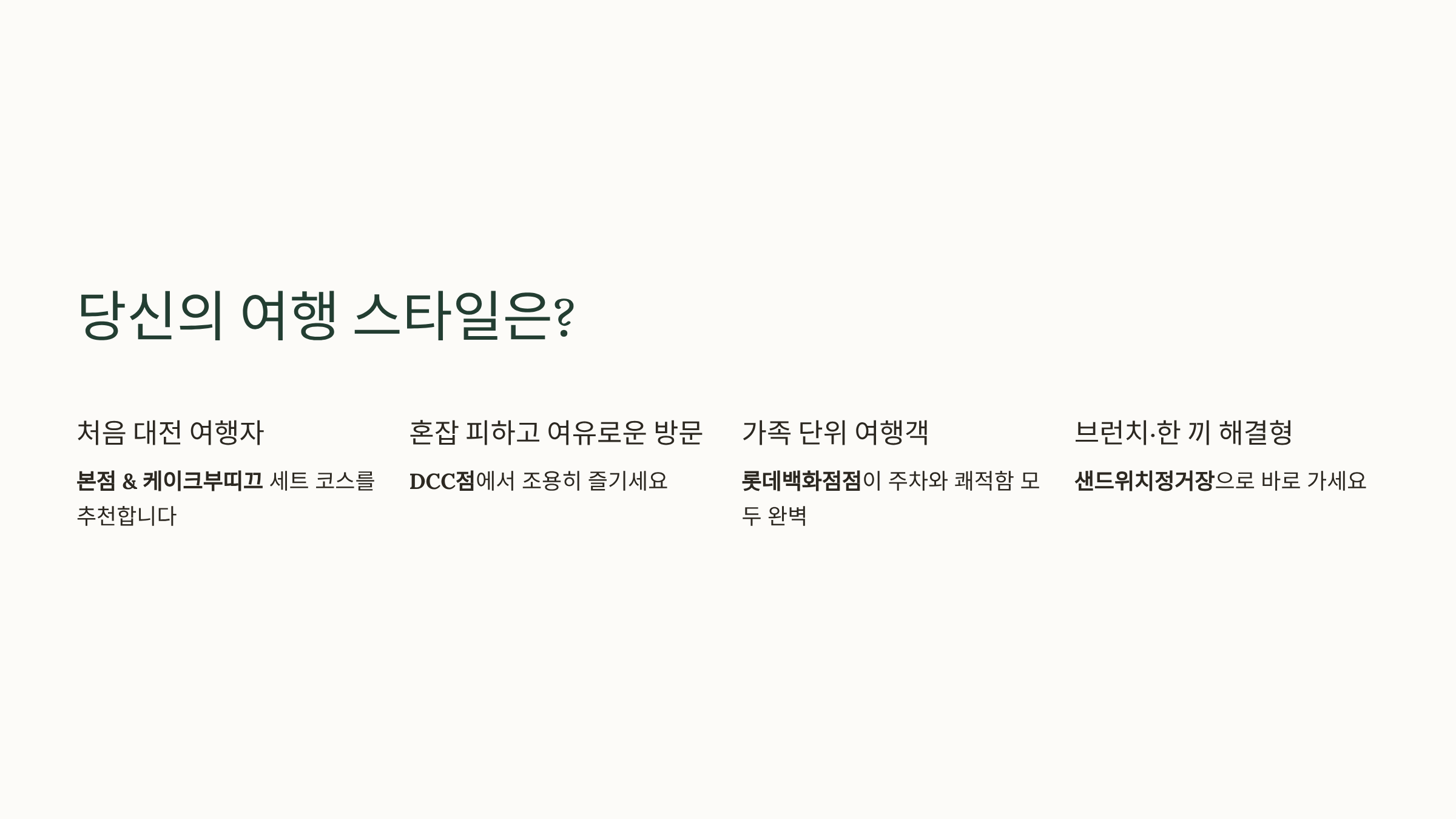 - 처음 대전 여행자 → 본점 & 케이크부띠끄 세트 코스