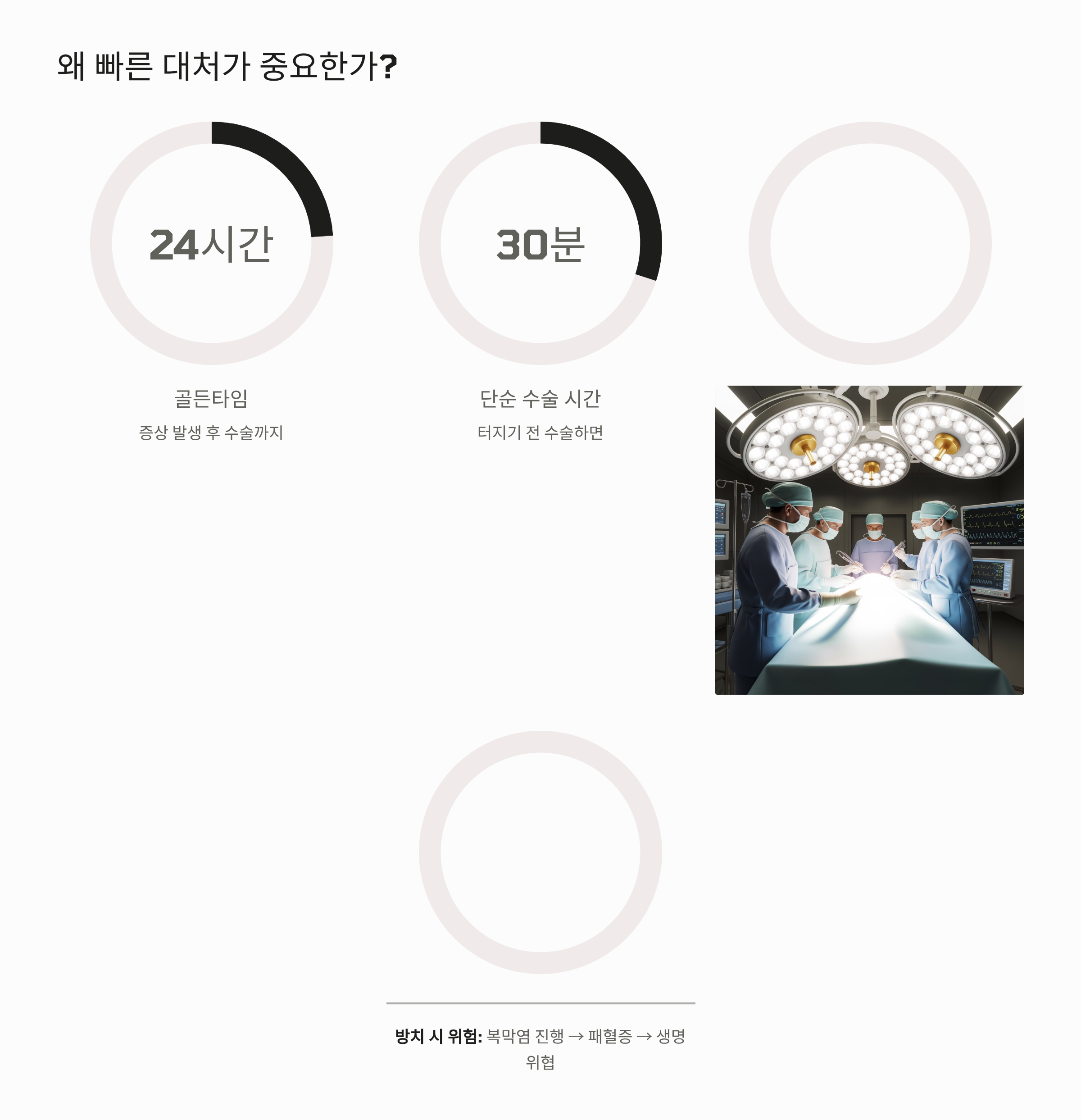 맹장염이 의심된다면 그 즉시 올바른 대처를 해야 수술 합병증을 막고 빠른 회복을 도울 수 있습니다.