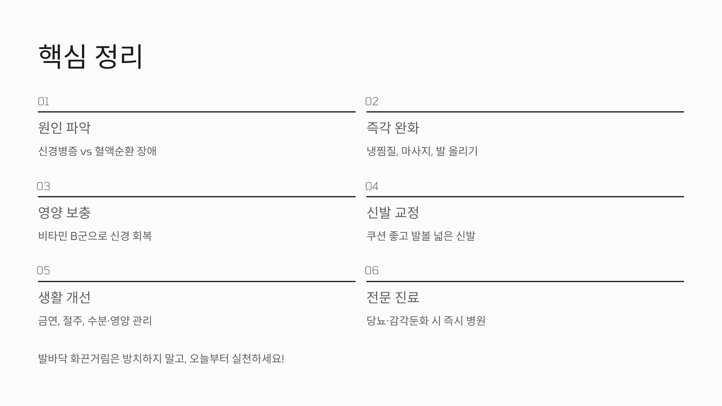 화끈거리는 발바닥 통증을 완화하고, 신경 및 순환 장애를 개선하는 실질적인 해결 꿀팁입니다.