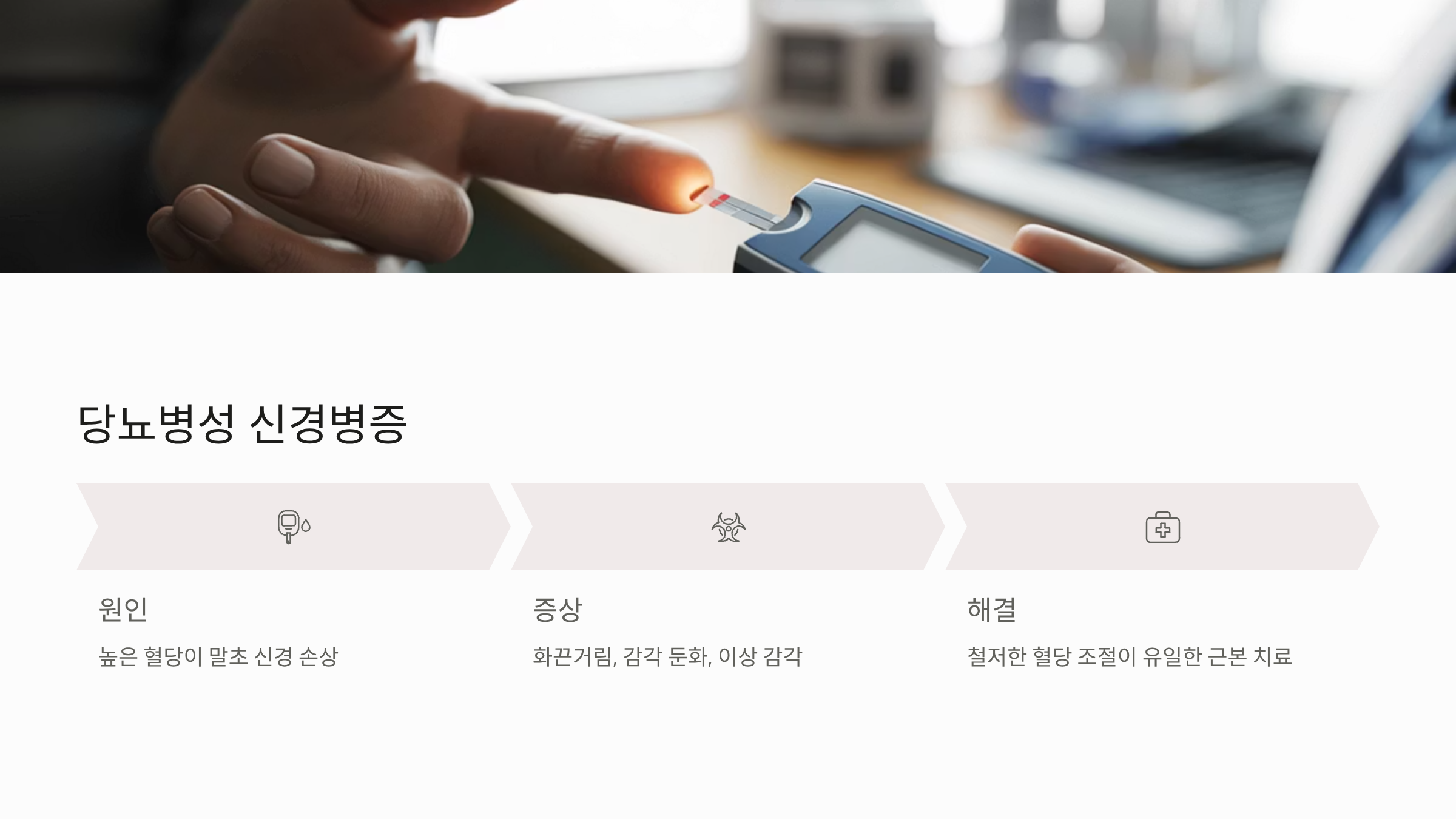- 해결: 철저한 혈당 조절이 유일한 근본적 해결책입니다.
