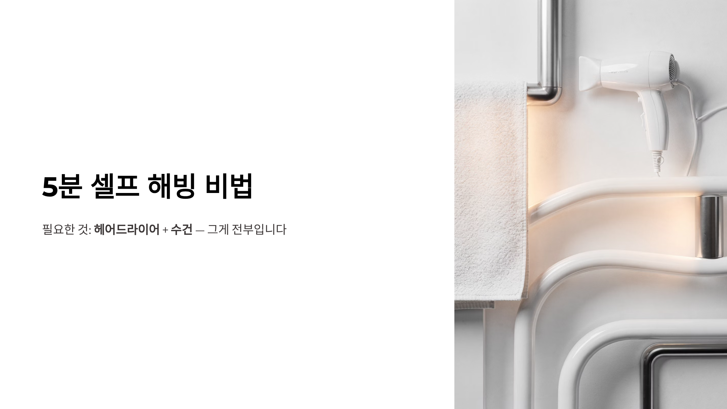 집에 있는 '헤어드라이어'와 '수건'만 있으면 초보자나 여성분들도 단 5분 만에 얼어붙은 배관을 녹이고 온수를 쓸 수 있습니다.