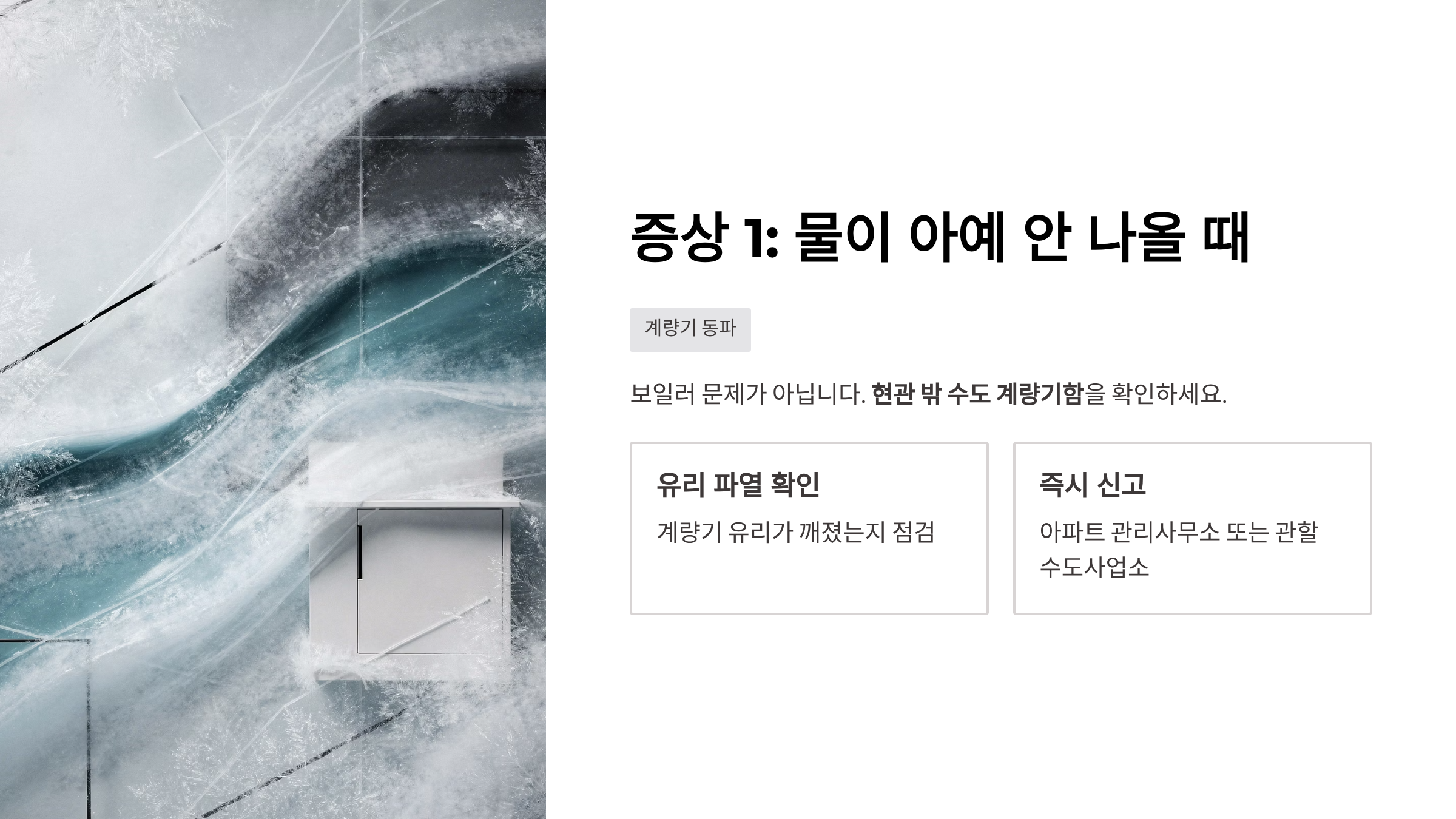 2. 증상 1: 찬물/온수 둘 다 안 나올 때 (계량기 동파)