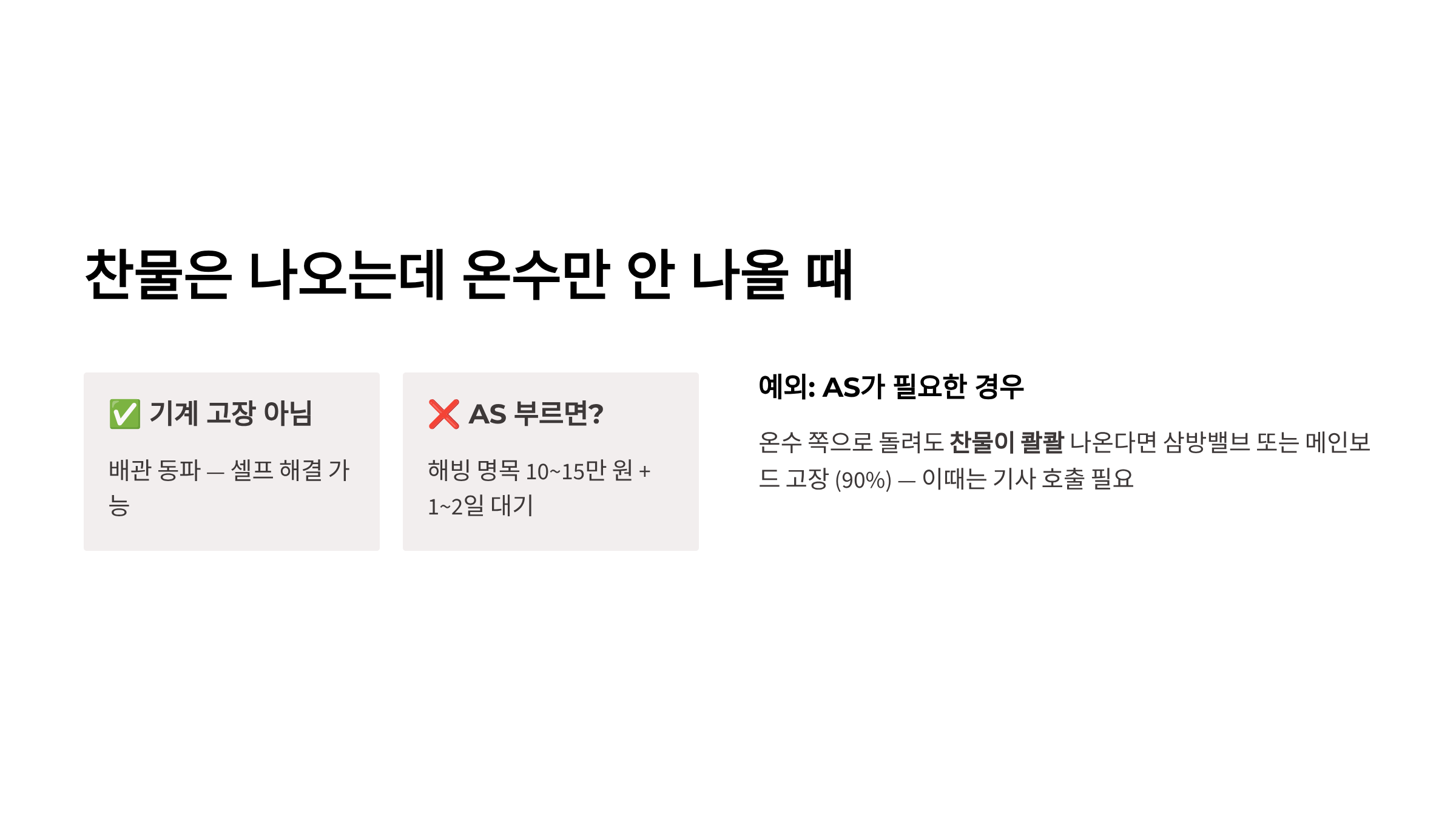 1. 10초 자가 진단: 찬물은 나오나요?