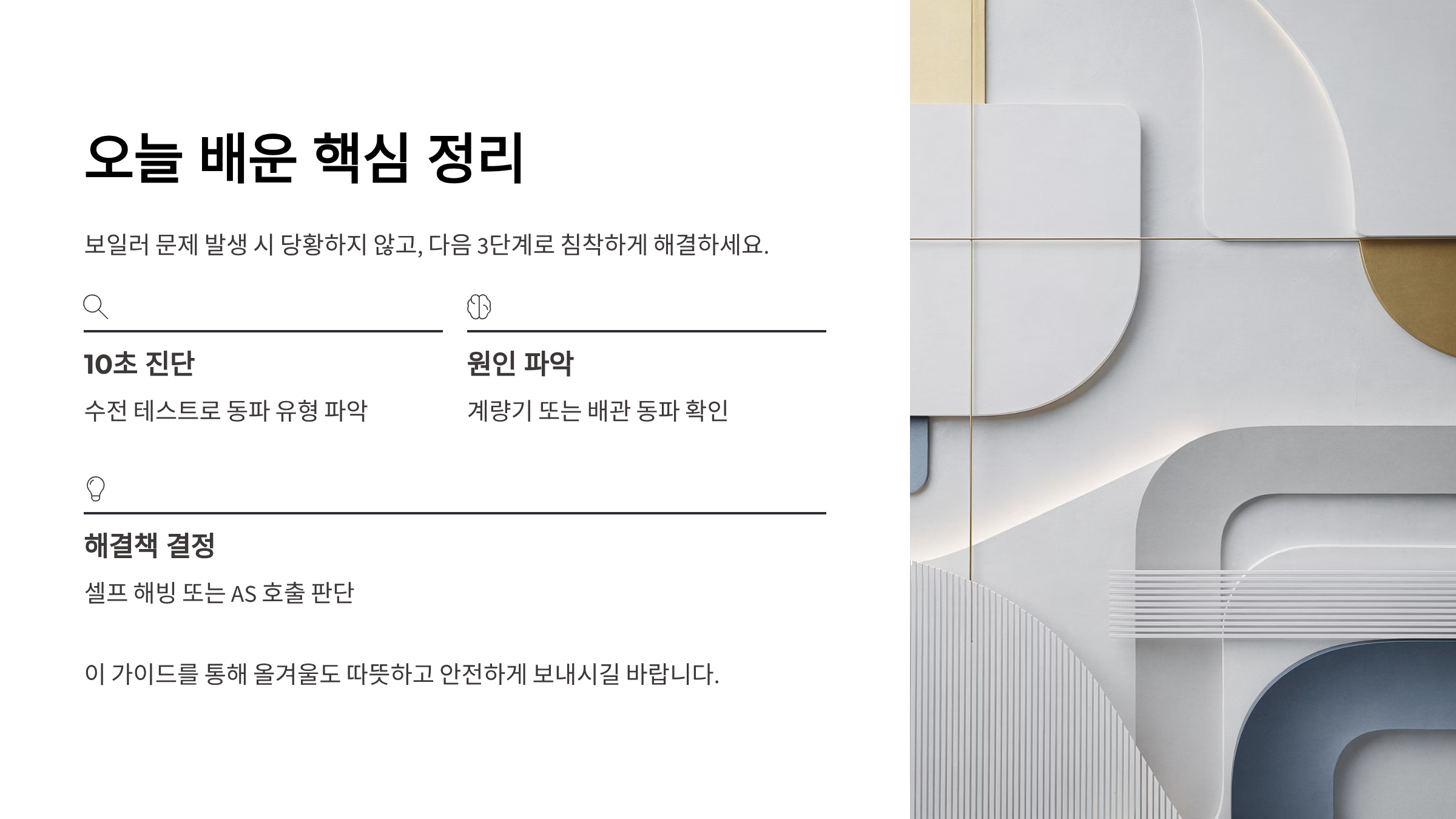 비싼 돈 주고 기사님 부르기 전에, 딱 5분만 투자해서 아래 셀프 해결법을 그대로 따라 해보세요. 막혔던 온수가 콸콸 쏟아질 것입니다!