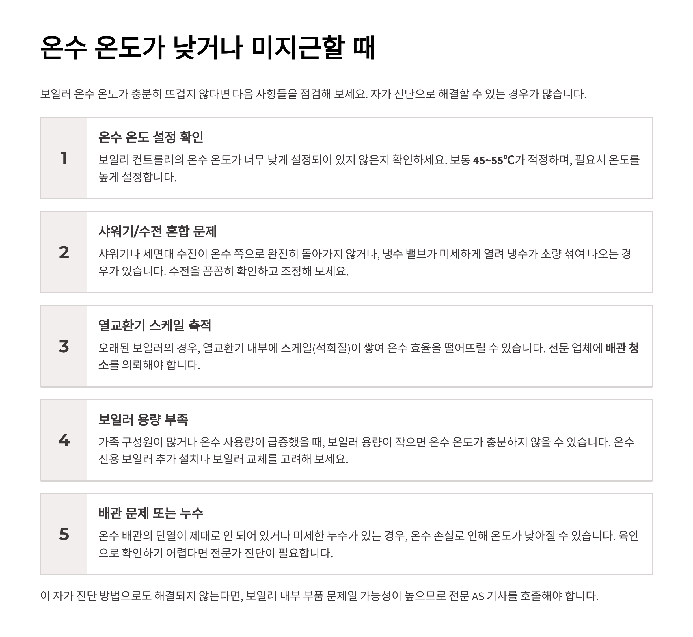 📑 온수 불량 원인 및 해결 가이드