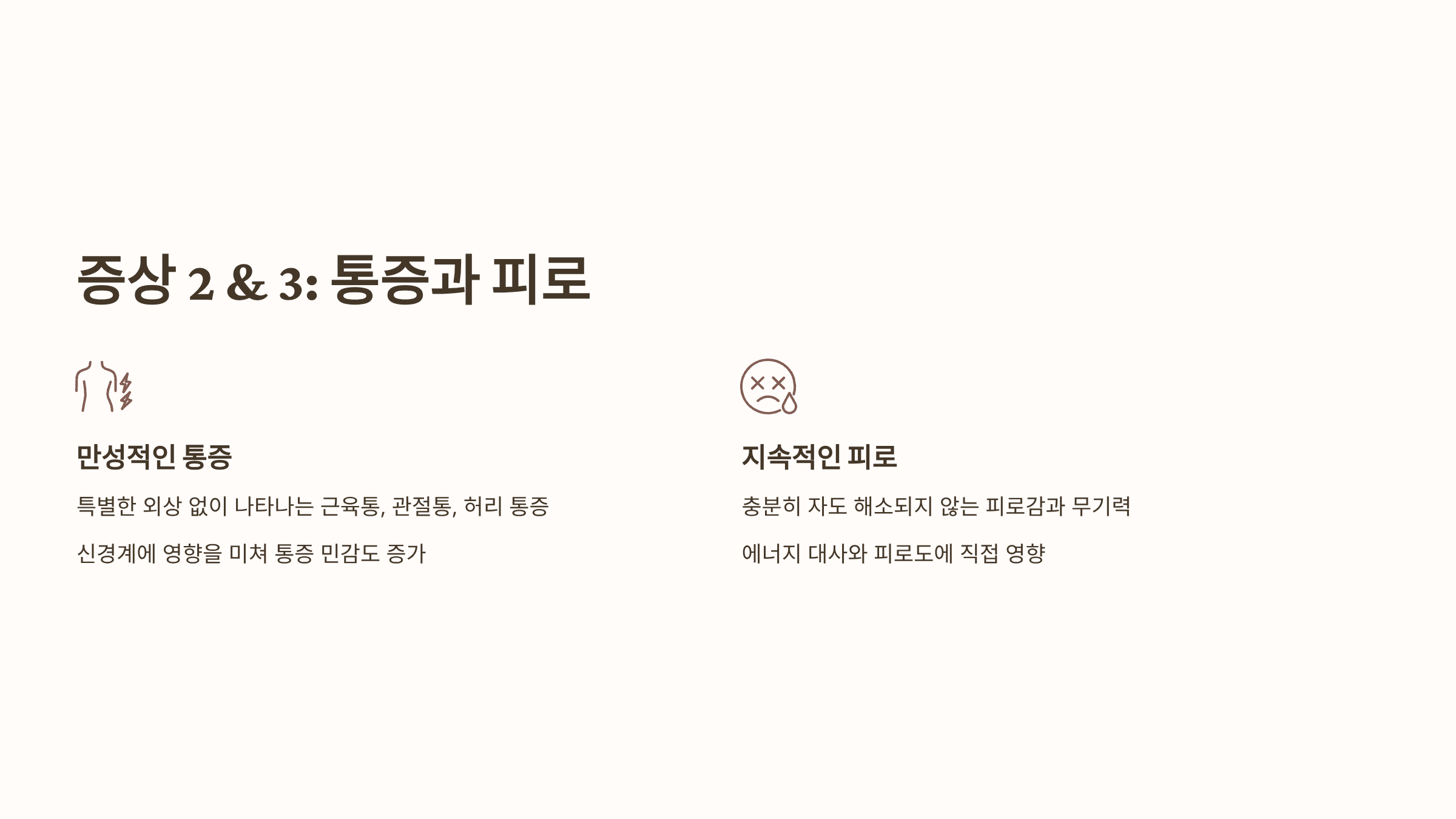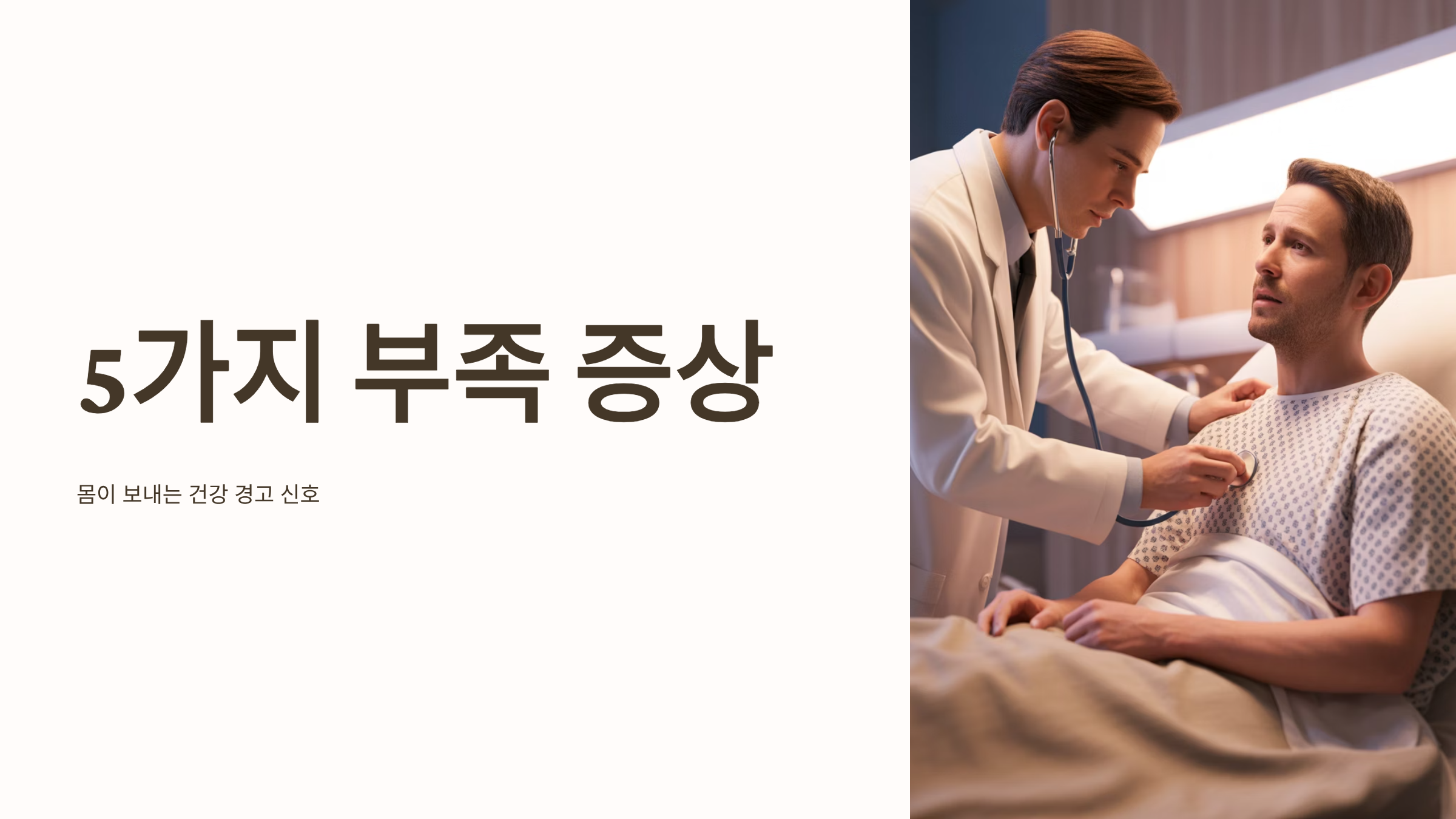 비타민D 부족증상이 심화될 경우 몸이 보내는 대표적인 5가지 이상 신호들을 정리했습니다. 이 증상들이 만성적으로 나타난다면 비타민D 수치 검사가 필요할 수 있습니다.