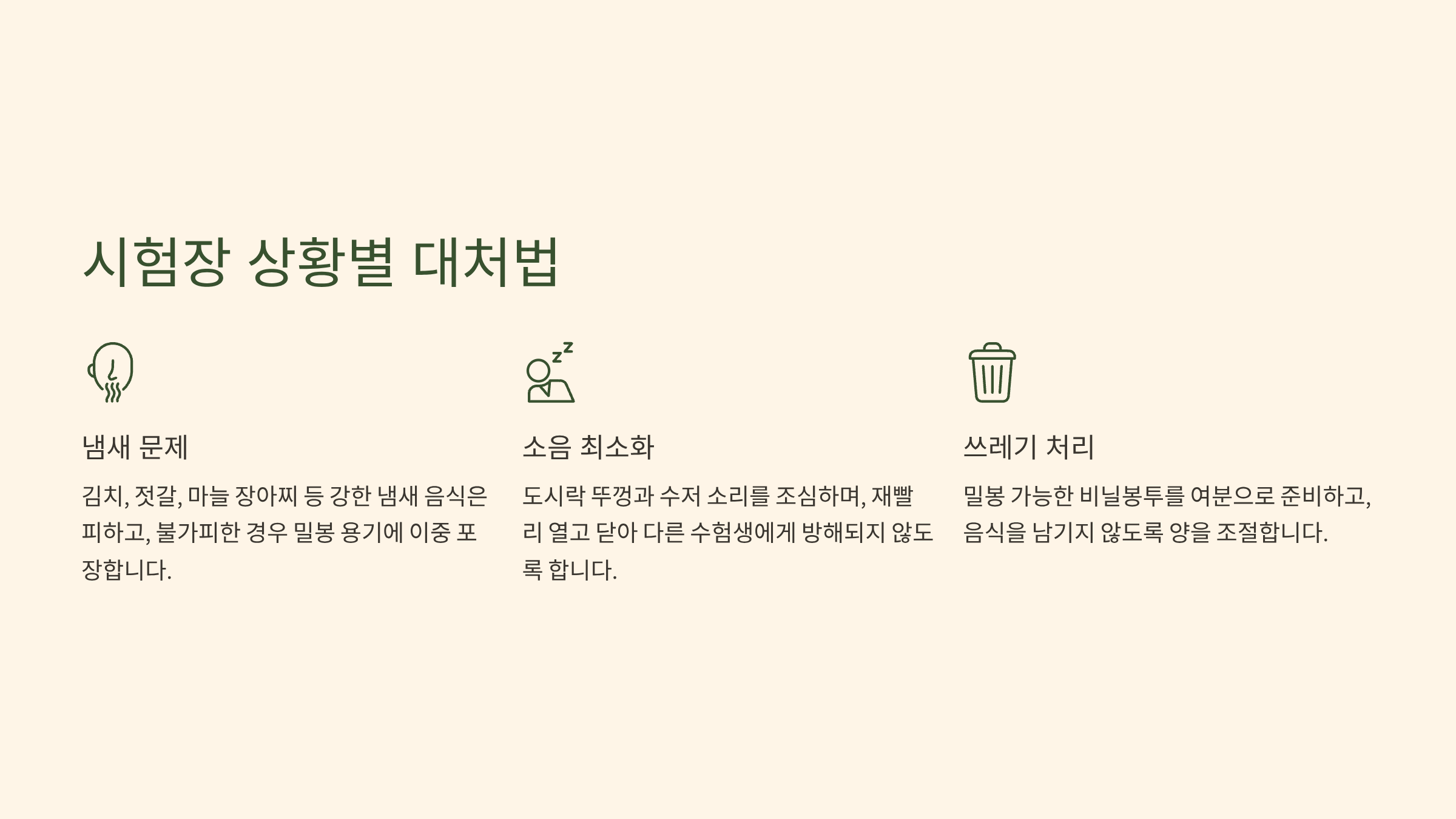 시험장 상황별 도시락 대처법: 냄새, 소음, 남은 음식 처리 요령
