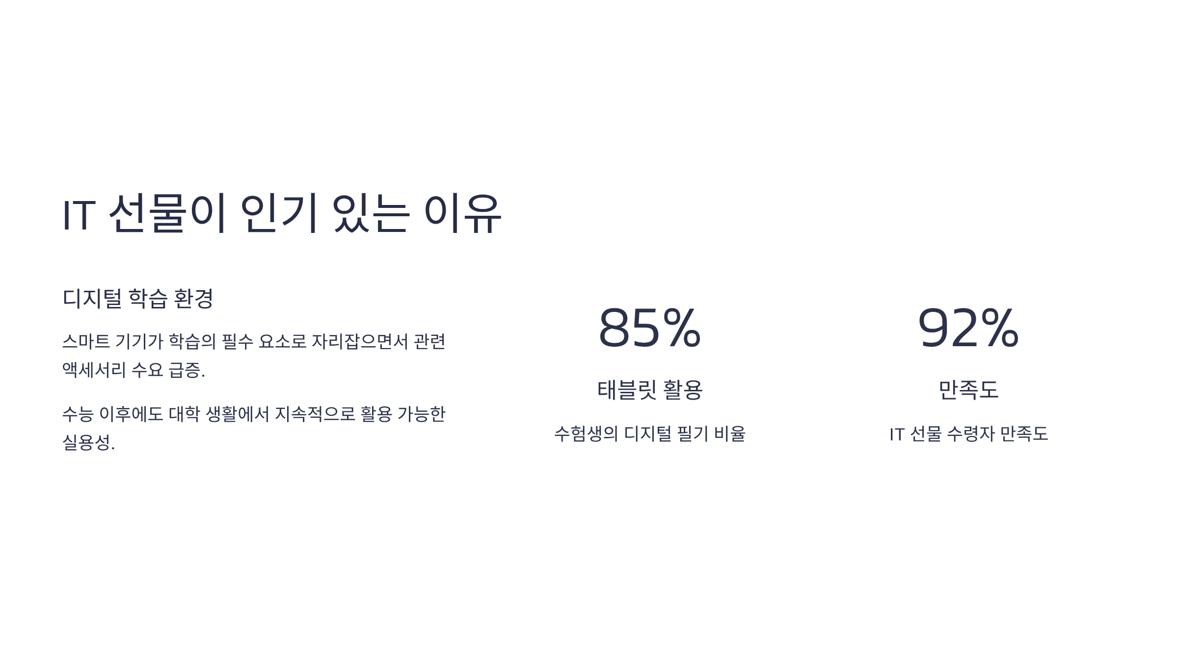 디지털 학습 환경이 보편화되면서, 수능 선물 베스트 트렌드에도 IT 관련 항목이 상위권을 차지하고 있습니다.