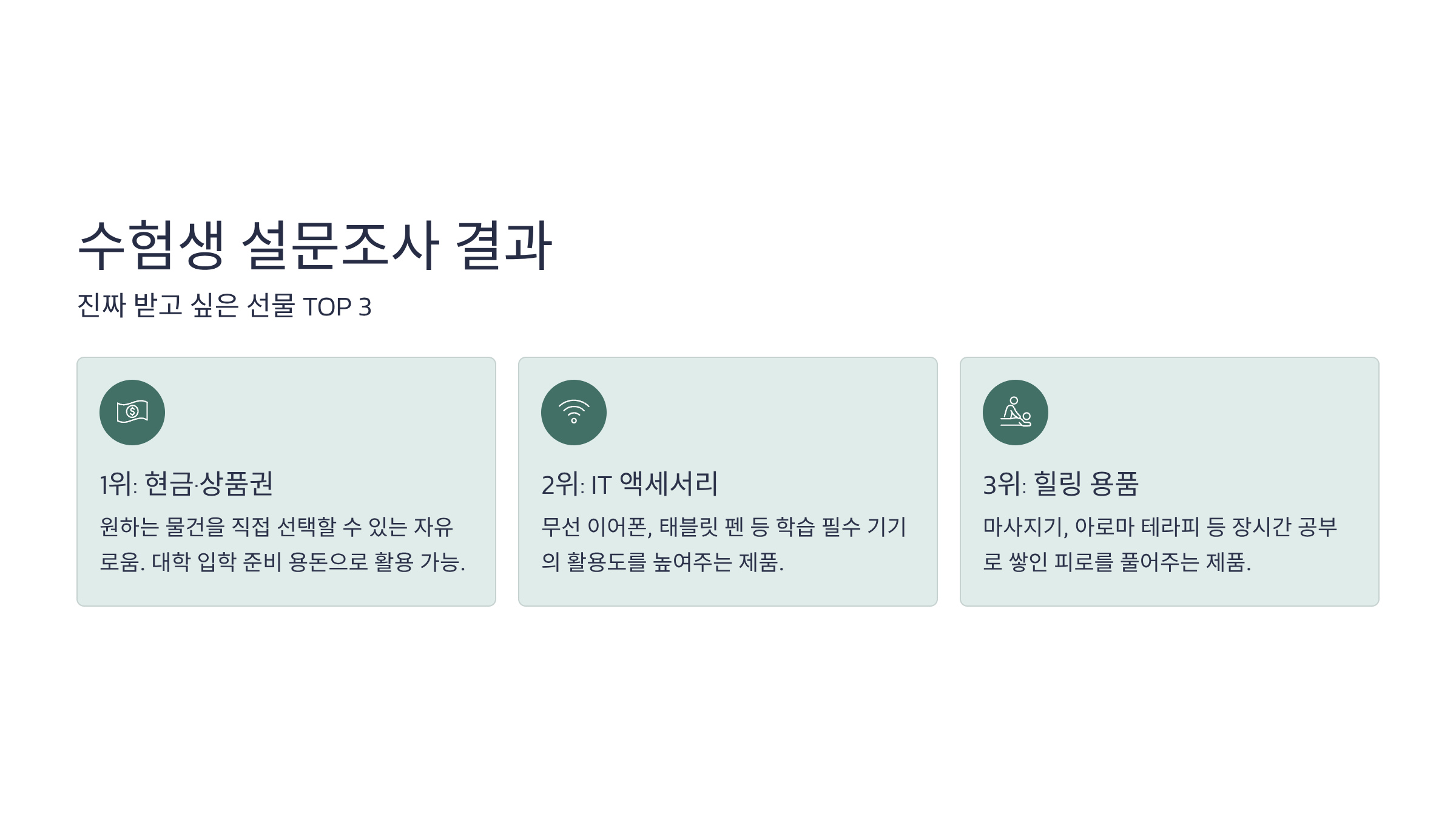 수험생이 진짜 원하는 수능 선물: 설문조사로 본 만족도 1위 아이템