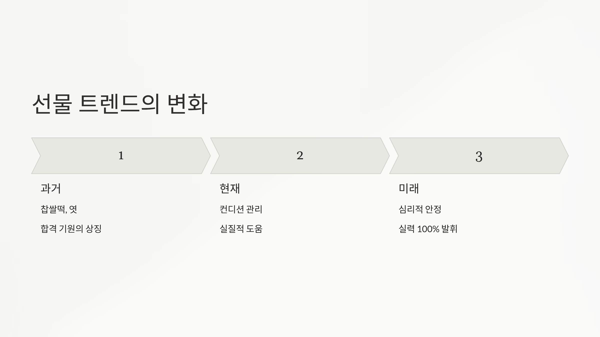 2025 수능 선물 추천의 트렌드는 이제 합격 기원의 상징인 찹쌀떡에서 벗어나, 수험생의 심리와 컨디션을 실질적으로 관리하는 아이템으로 이동하고 있습니다.
