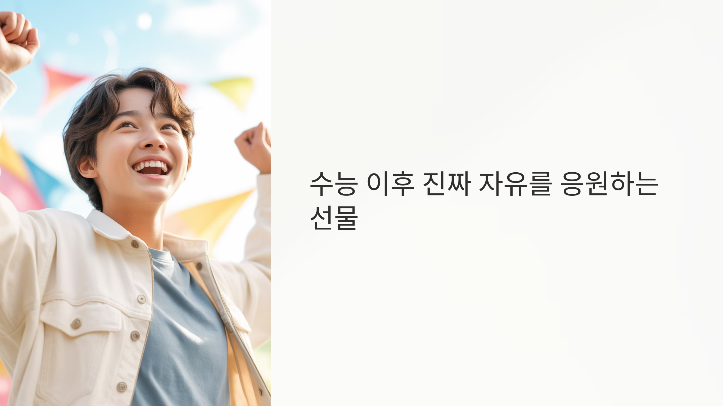 수능이 끝난 직후, 수험생에게 가장 필요한 것은 '해방감'과 '경험'입니다. 시험 이후의 삶을 응원하는 이색 선물 아이디어입니다.