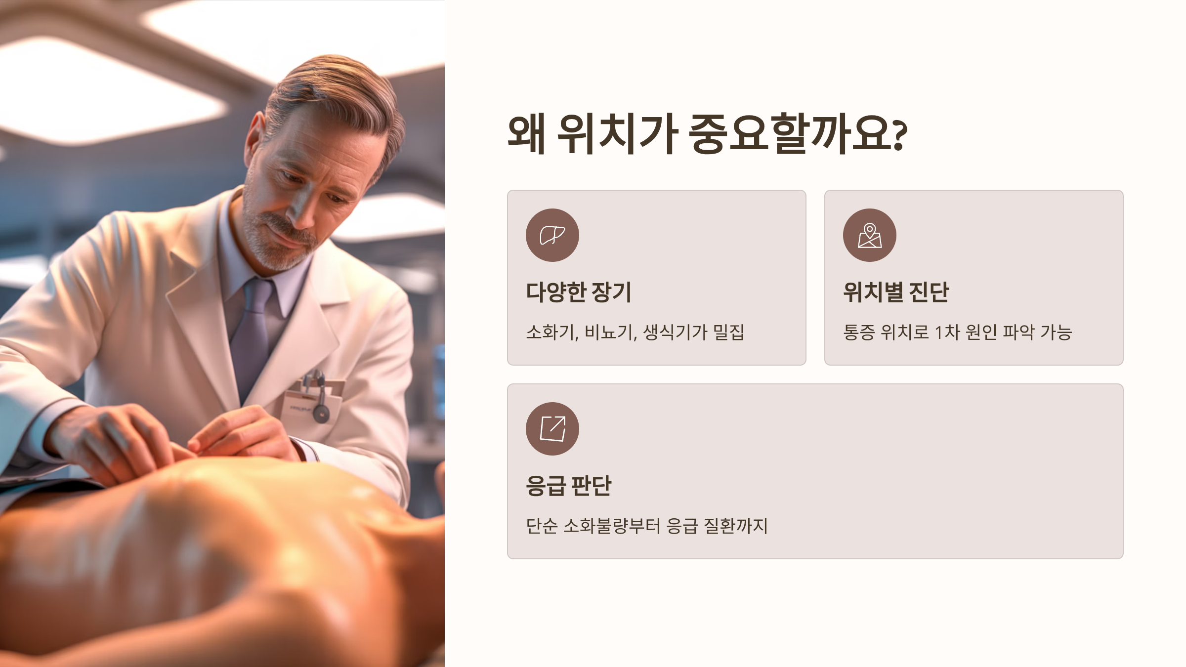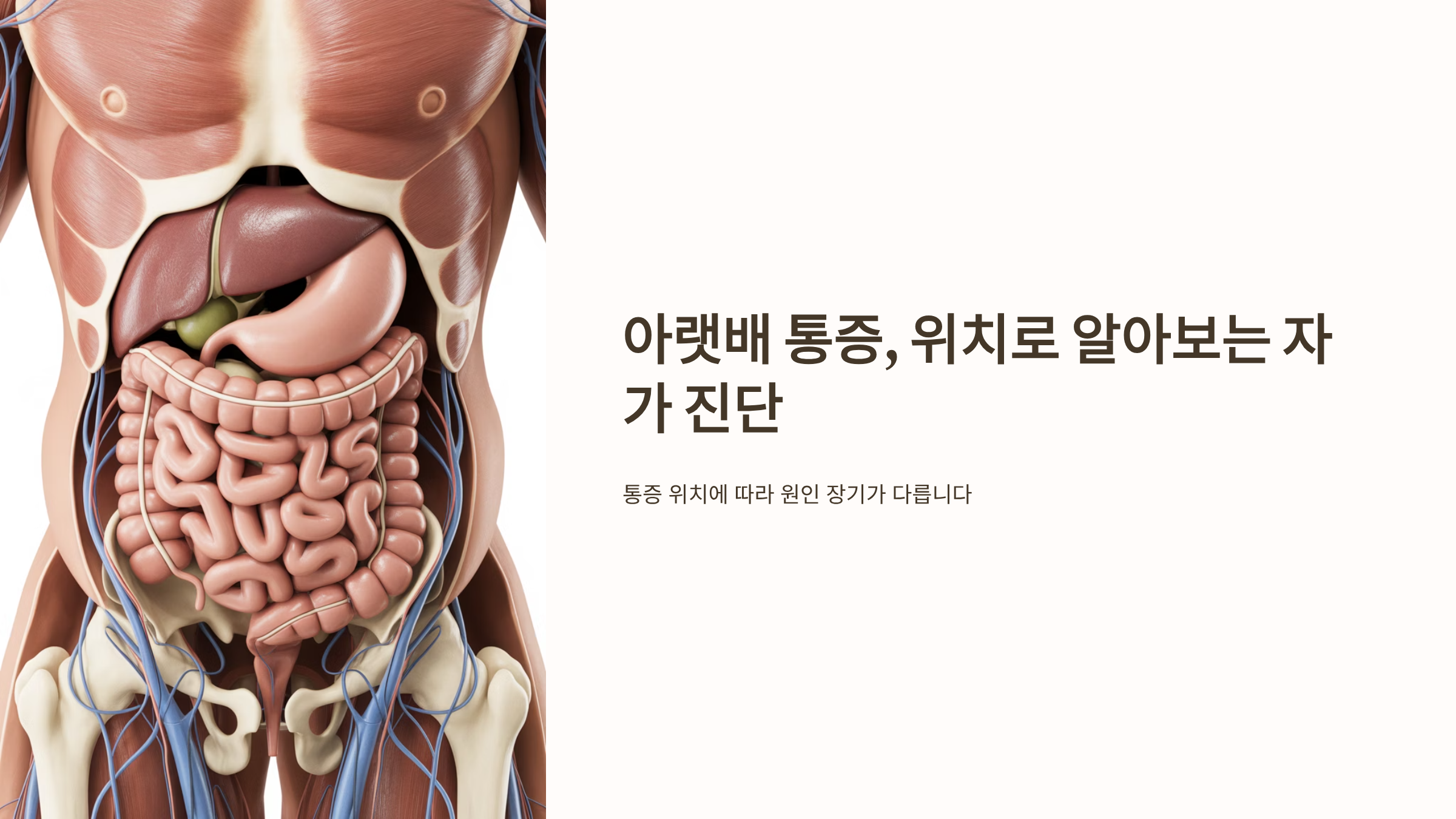 아랫배 통증은 일상에서 흔히 겪는 증상이지만, 원인이 단순한 소화 불량일 수도, 또는 즉시 수술이 필요한 응급 상황일 수도 있어 정확한 진단이 중요합니다. 복부에는 소화기, 비뇨기, 생식기 등 다양한 장기들이 밀집해 있으며, 통증이 시작된 위치를 정확히 파악하는 것만으로도 어떤 장기에 문제가 생겼는지 1차적으로 짐작할 수 있습니다. 이 포스팅은 아랫배가 아픈이유를 통증의 위치에 따라 세분화하여 분석하고, 가정에서 스스로 통증의 원인을 판단하고 적절한 대처를 할 수 있는 실질적인 자가 진단 방법을 안내하겠습니다.