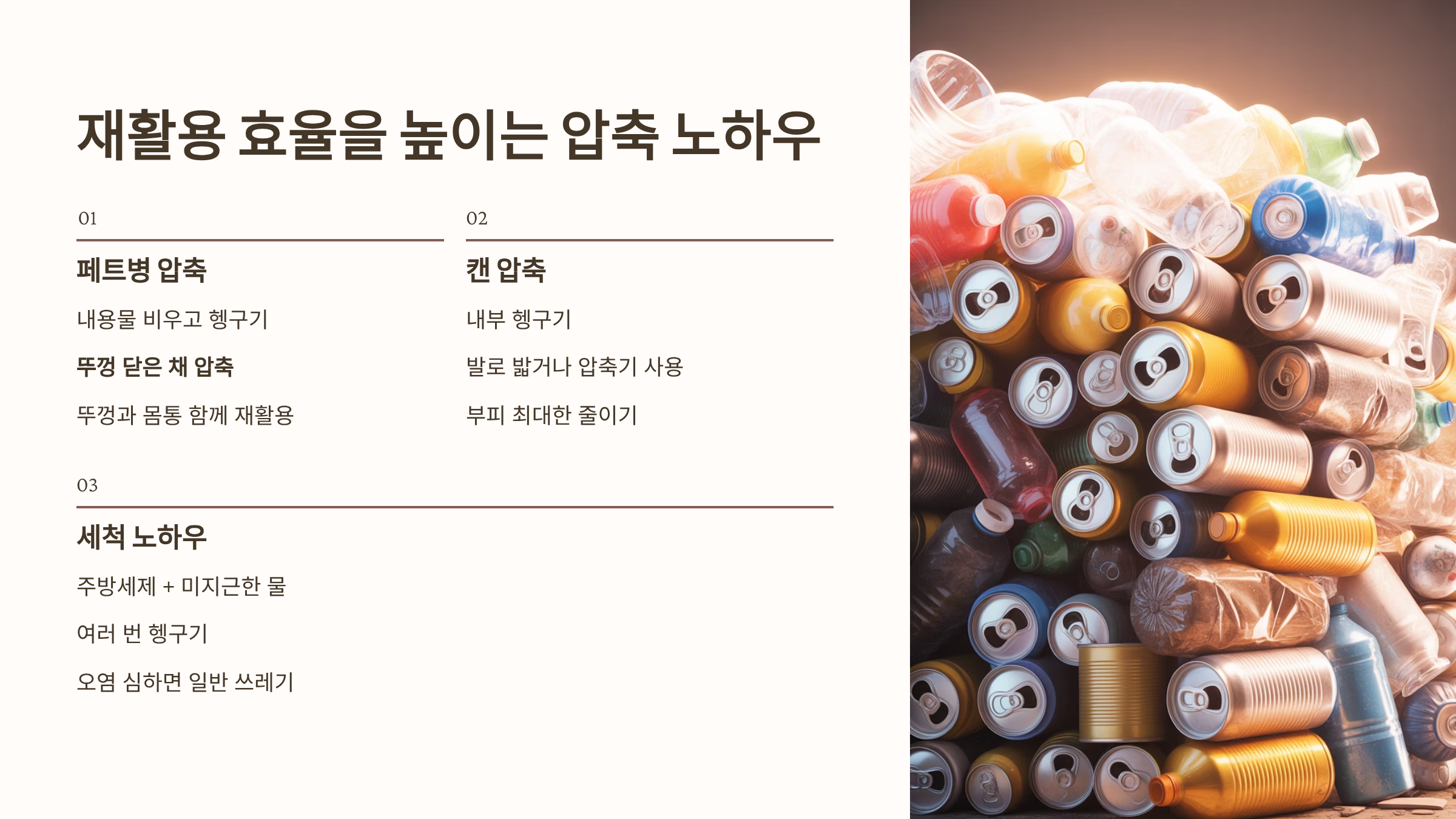 부피를 줄이고 재활용 효율을 높이는 플라스틱, 캔 압축 및 세척 노하우