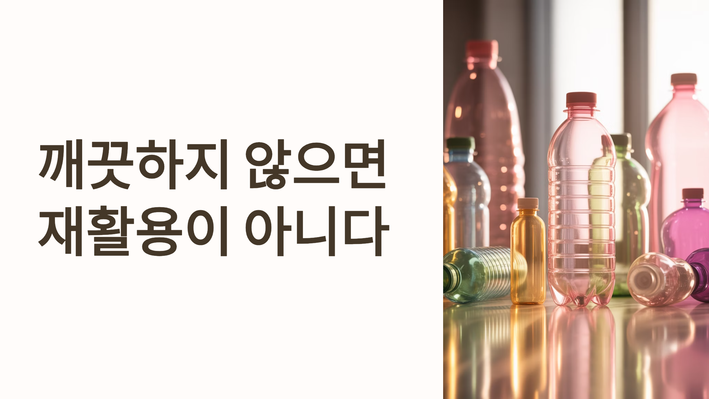 - 원칙 4: 섞지 않기 (종류별 분리): 플라스틱, 유리, 캔, 종이 등 재질별로 명확히 구분하여 배출해야 합니다. 재활용 공정은 재질별로 다르기 때문에 섞이면 처리가 불가능합니다.