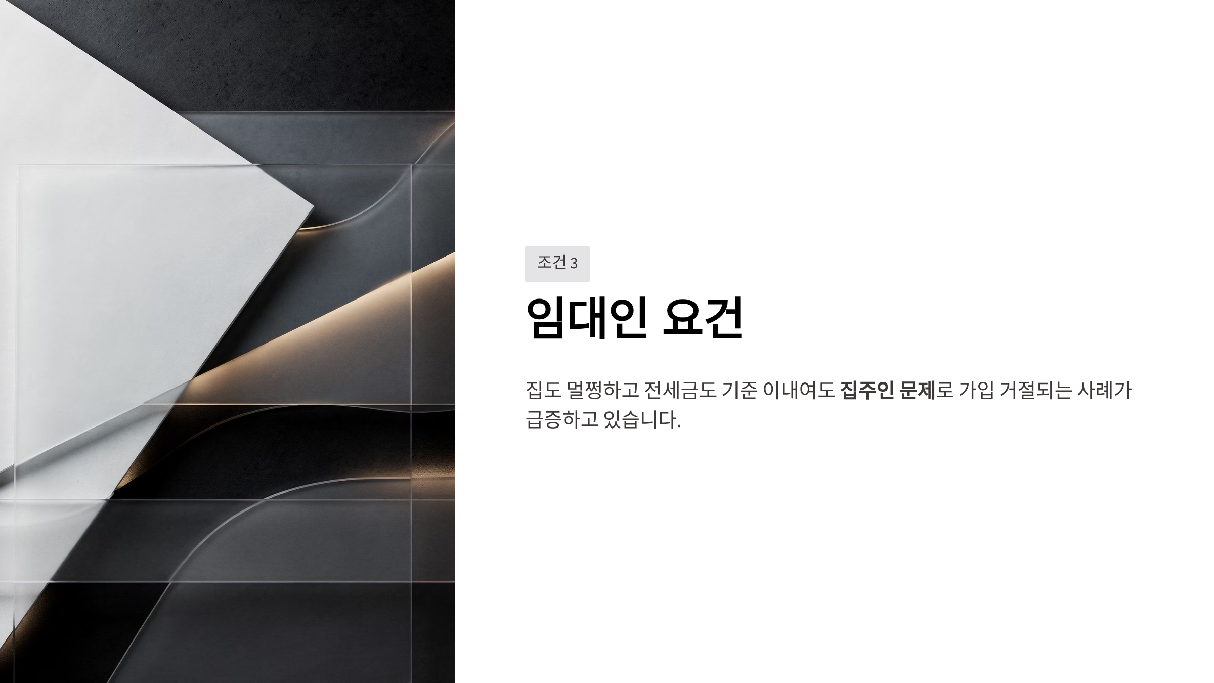 집도 멀쩡하고 전세금도 기준 이내지만, 집주인(임대인)의 상태 때문에 가입이 거절되는 황당한 사례도 증가하고 있습니다.
