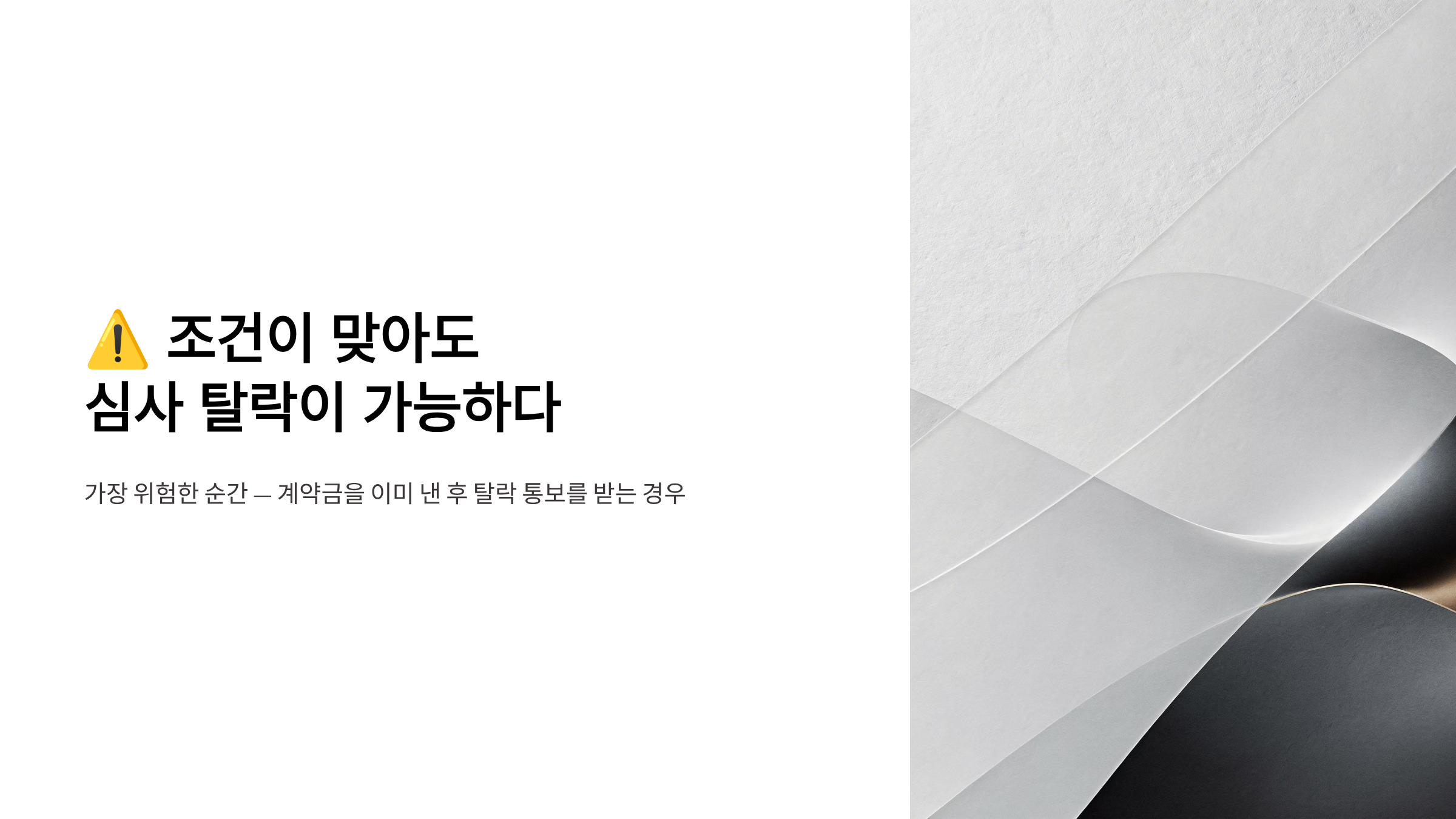 4. [경고] 가입조건 맞춰도 심사 탈락하면 계약금 날린다?