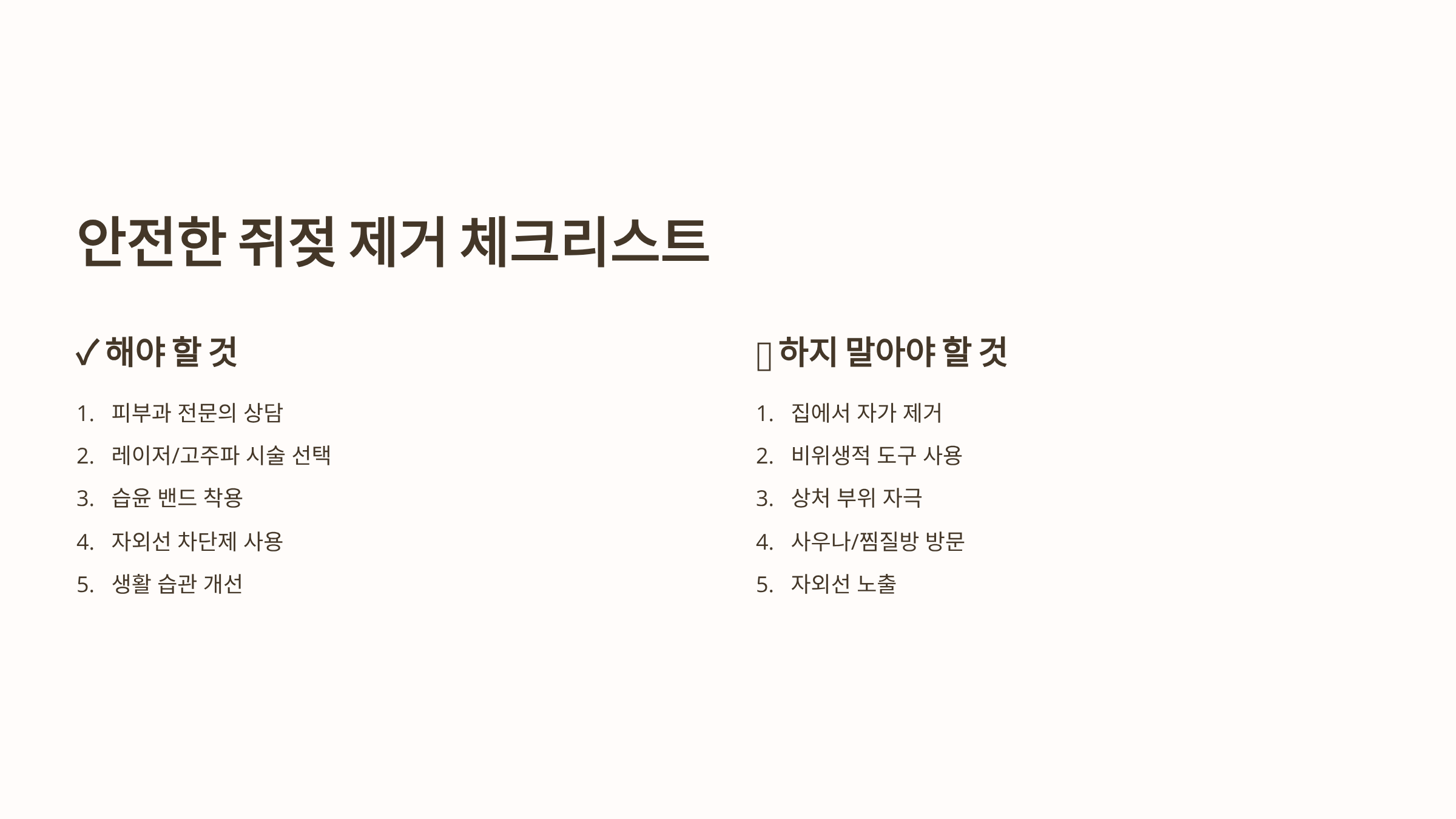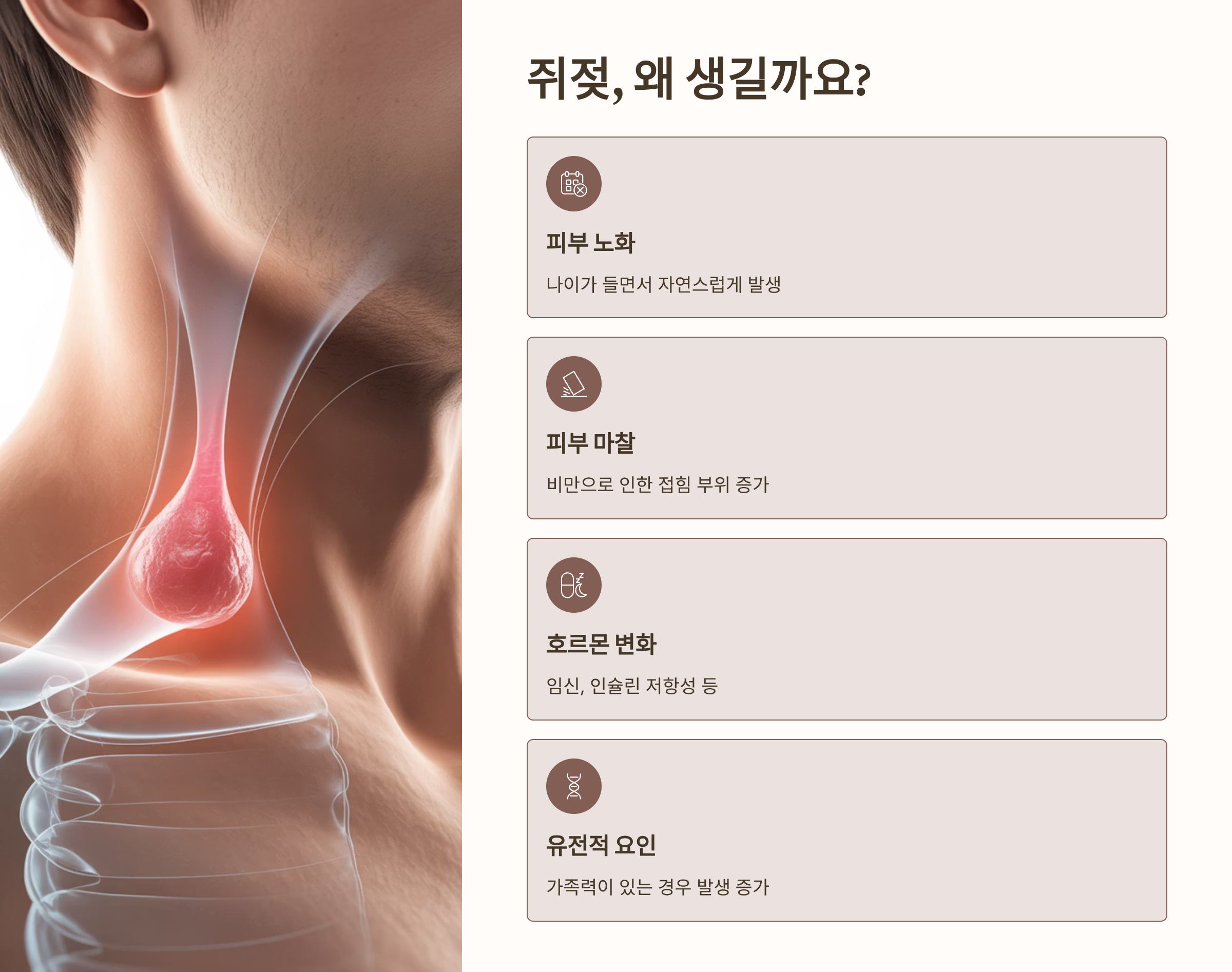 쥐젖은 왜 생기는지 그 원인을 이해하고, 자가 제거의 위험성을 명확히 인지해야 안전하게 문제를 해결할 수 있습니다.