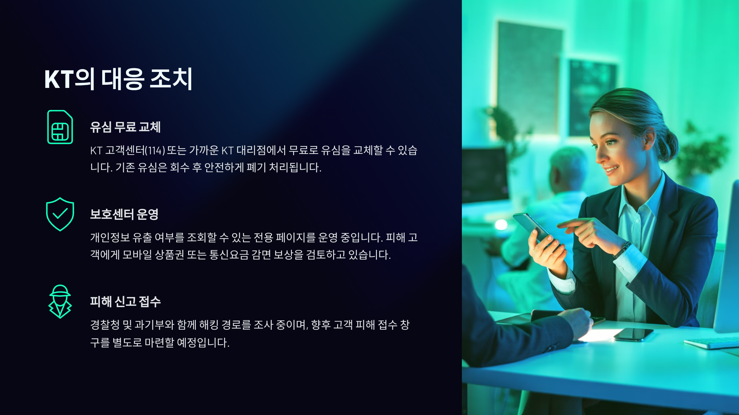 - KT는 경찰청 및 과기부와 함께 해킹 경로를 조사 중이며,