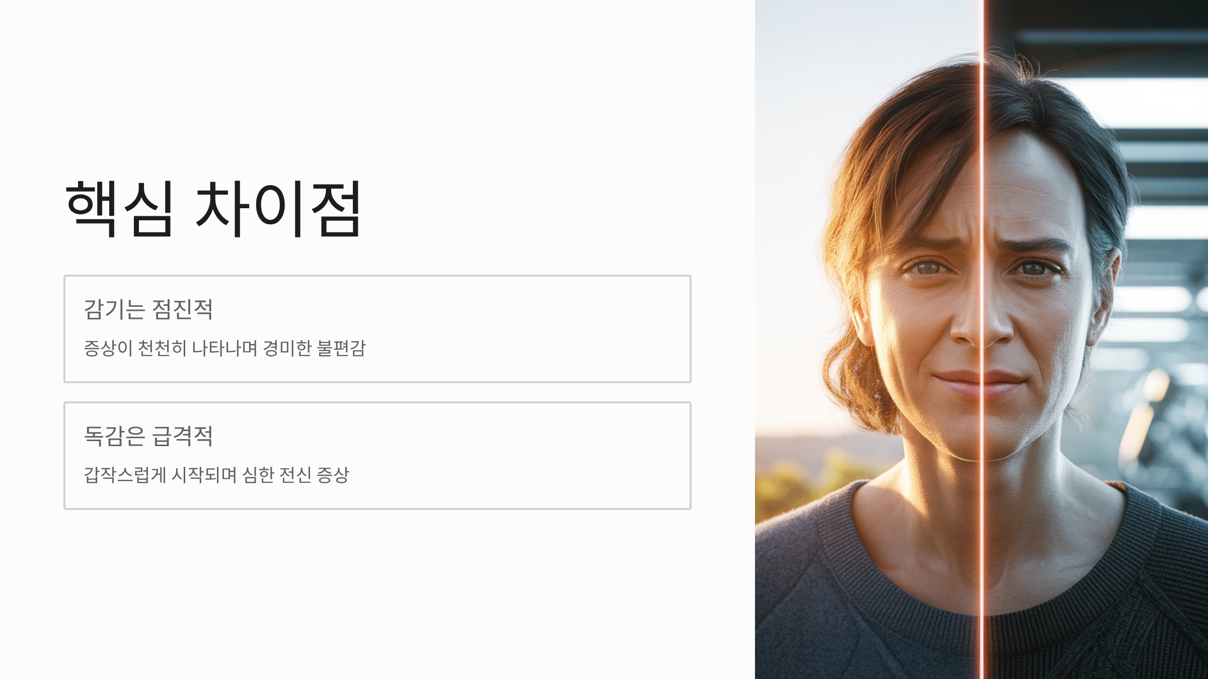 | 전신 증상 | 경미한 불편감 | 심한 몸살과 무기력 |